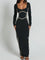 Contrast Trim Long Sleeve Bodycon Maxi Dress