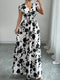 Printed V-Neck Ruffled Cap Sleeve Maxi Dress