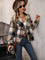 Perfee Plaid Collared Neck Long Sleeve Jacket