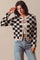 SO ME Tie Front Checkered Knitted Round Neck Cardigan