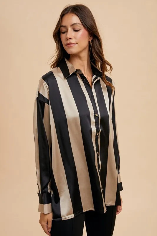 Annie Wear Striped Dropped Shoulder Button Up Shirt