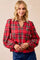 BiBi Christmas Plaid Balloon Sleeves Ruffled V-Neck Top