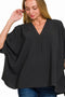 The Knit Top with Woven Ruffle Tiered Sleeves is a stylish and feminine piece that combines a cozy knit fabric with delicate woven ruffle sleeves in tiered layers. The knit top offers comfort and versatility, while the ruffle sleeves add a touch of elegance and charm. This combination creates a chic and eye-catching look that is perfect for various occasions. Pair this top with jeans for a casual yet sophisticated outfit, or with a skirt for a more dressed-up ensemble that highlights the beautiful sleeve detail.