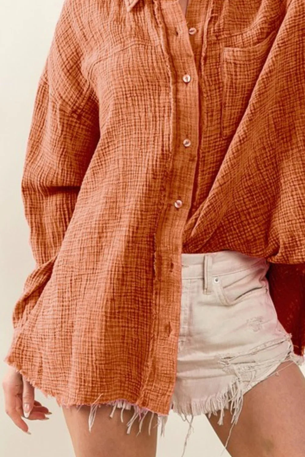 BiBi Raw Edge Detailed Mineral Washed Loose Fit Shirt