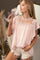 This Swiss Dot lace detail short sleeve blouse is a beautiful and elegant addition to your wardrobe. The Swiss Dot fabric adds a touch of texture and sophistication to the blouse. The delicate lace detailing gives it a romantic and feminine look. Pair it with high-waisted trousers for a polished office look, or with jeans for a casual outing. The short sleeves make it perfect for warmer weather, while the flowy fit provides comfort and style. Elevate your outfit with this charming Swiss Dot lace detail short sleeve blouse that will effortlessly take you from day to night with grace.