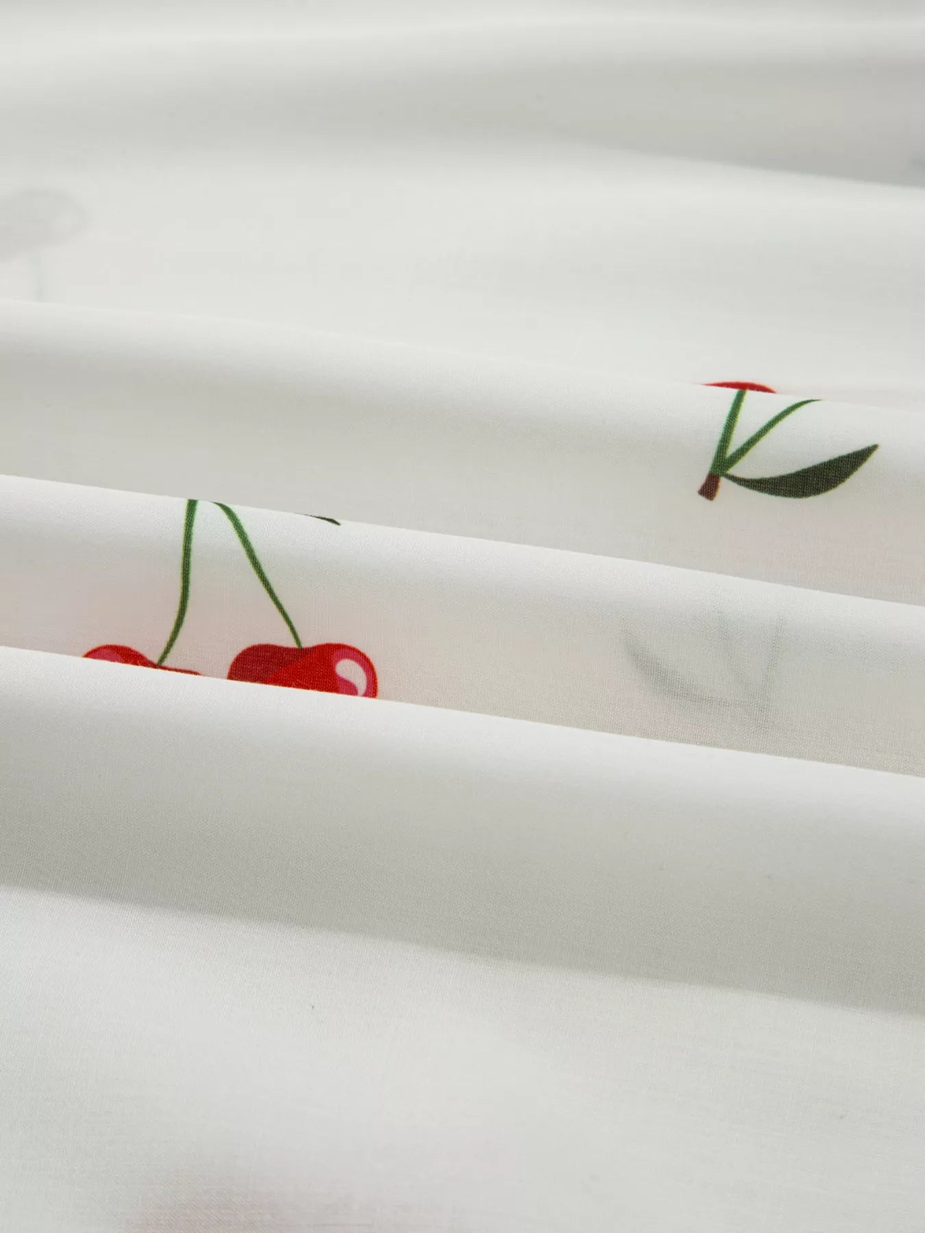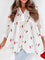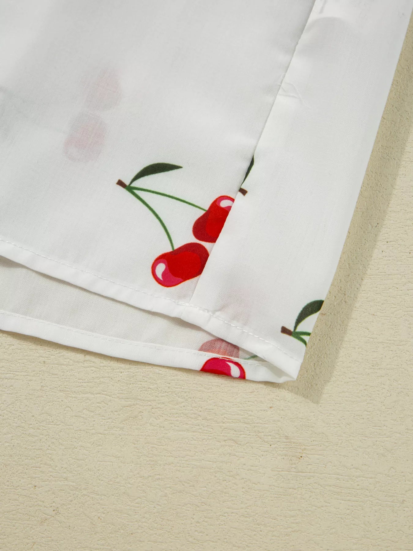 Cherry Print Flounce Sleeve Collared Frilled Babydoll Blouse