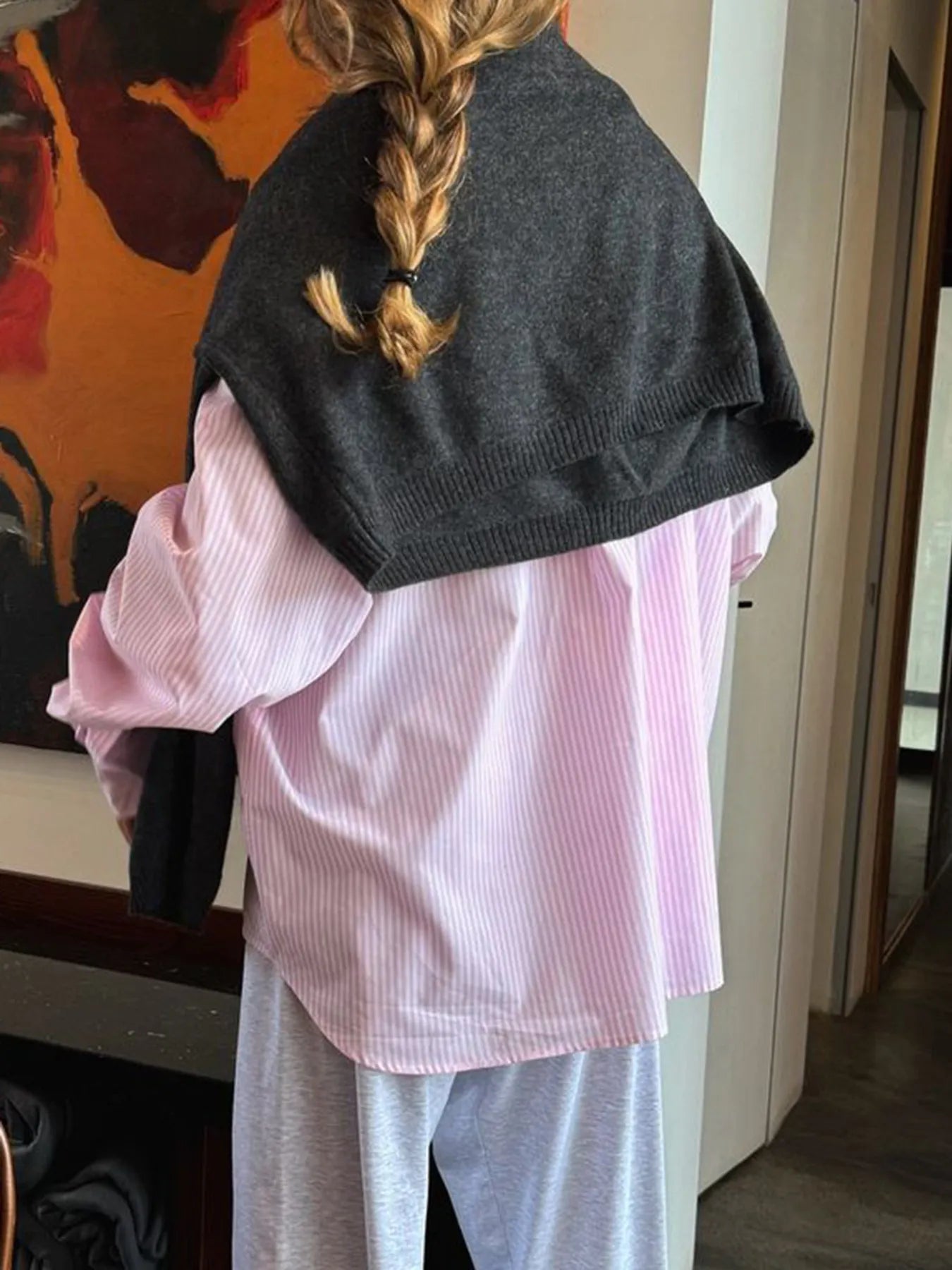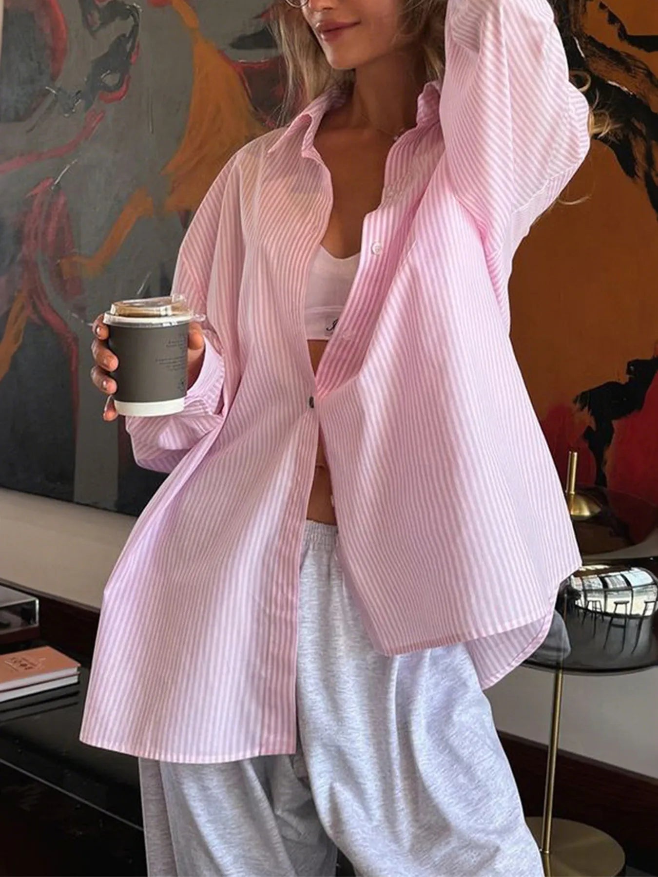 Collared Neck Long Sleeve Striped Button-Up Shirt