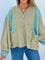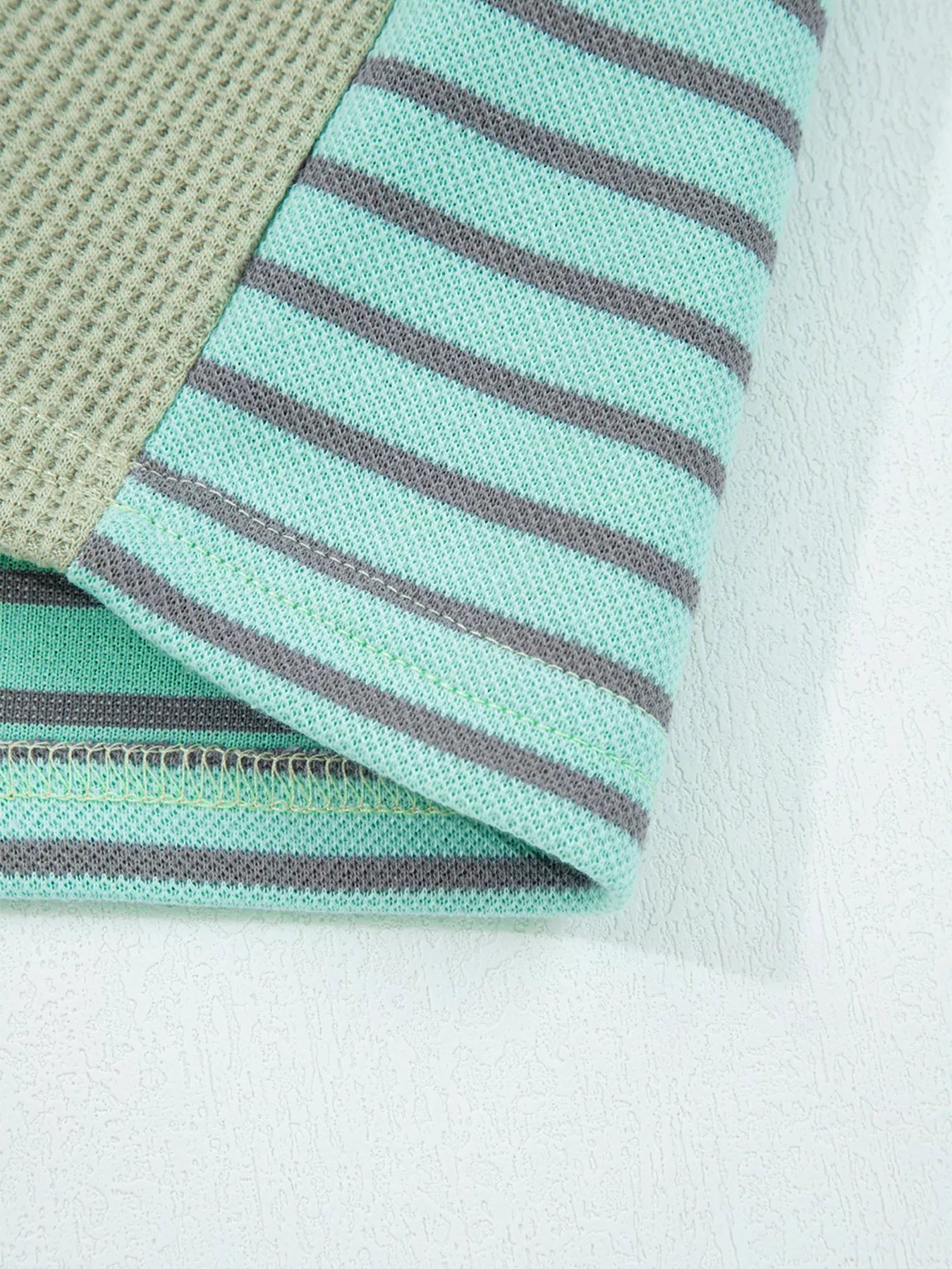 Exposed Seam Waffle Striped Patchwork Baggy Blouse