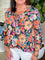 Floral 3/4 Flare Sleeve Tied Neck Blouse