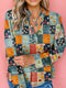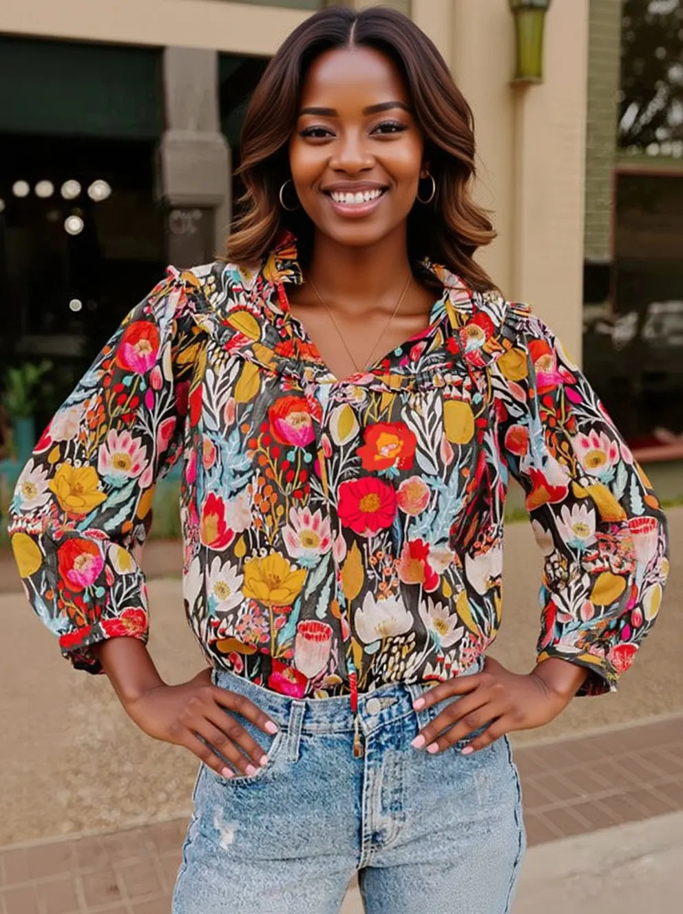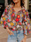Floral 3/4 Puff Sleeve Tied Neck Blouse
