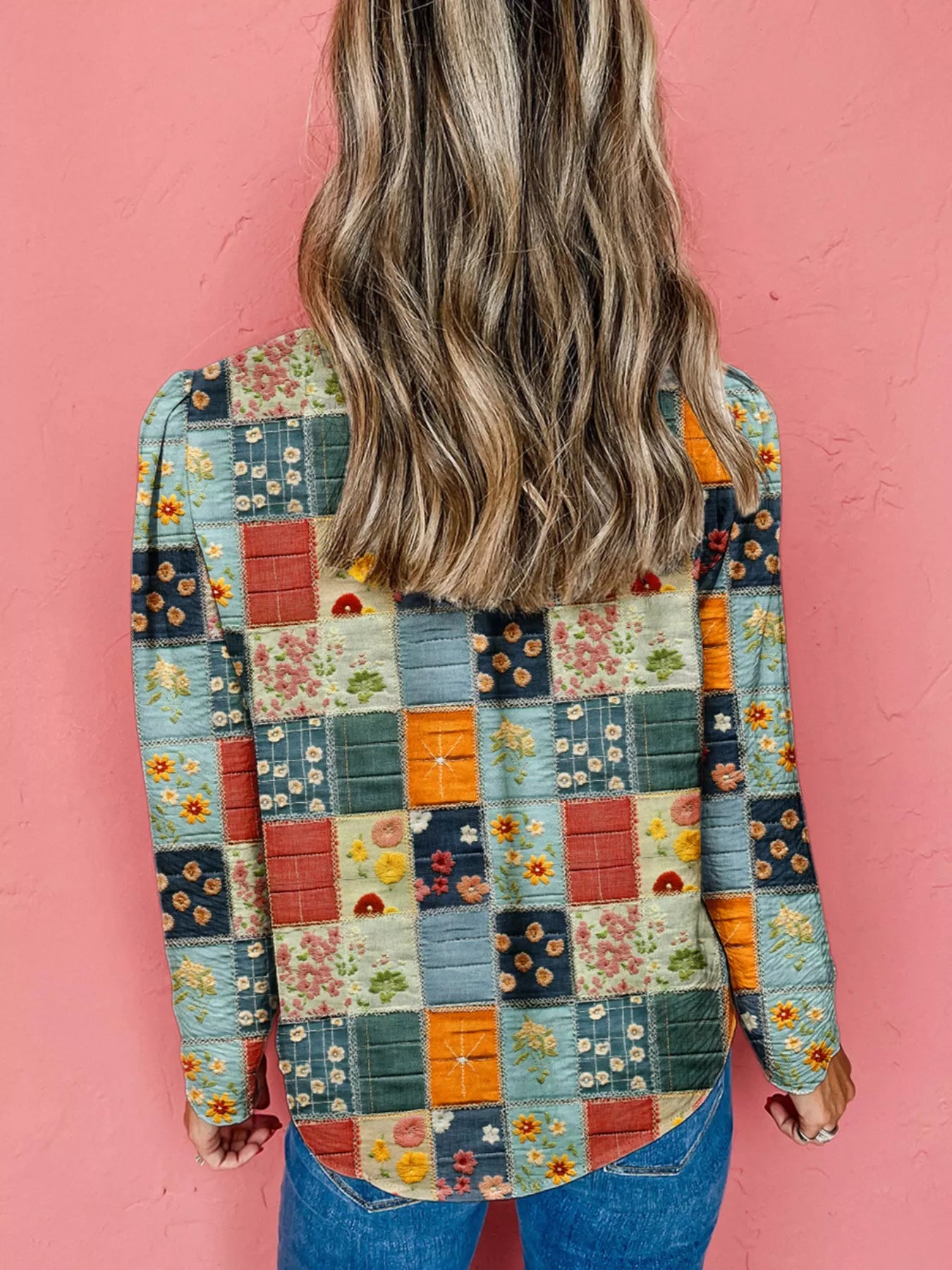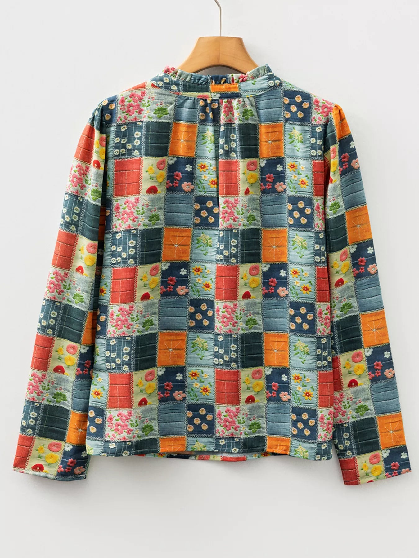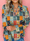 Floral Half Placket Notched Blouse
