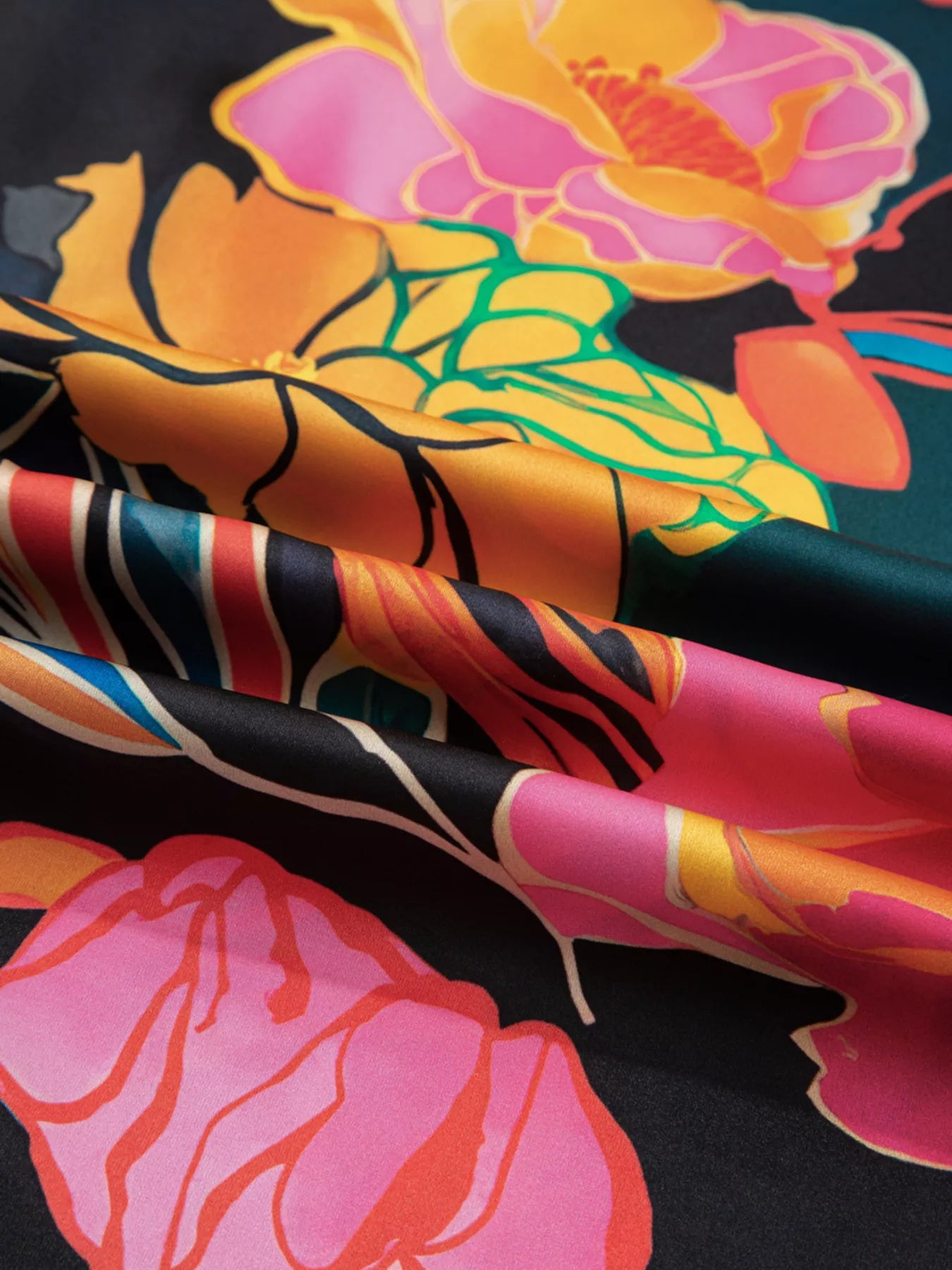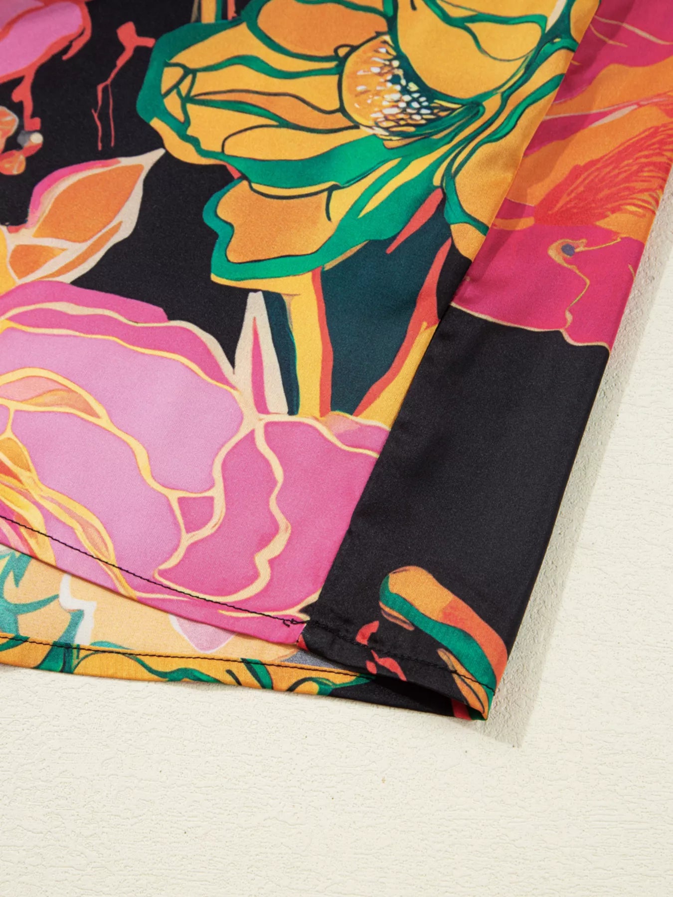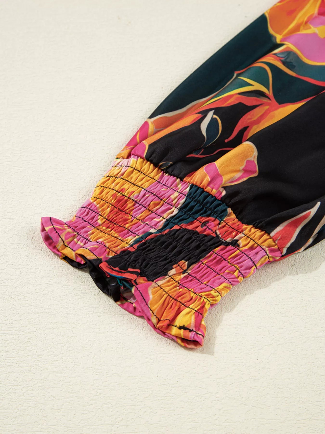 Floral Print Smocked Cuffs Puff Sleeve Blouse