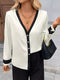 Full Size Printed Button Detail Long Sleeve Blouse Plus Size