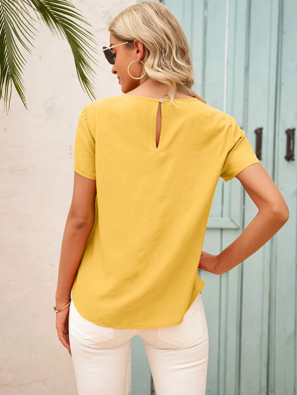 Ivy Lane Frill Round Neck Short Sleeve Blouse