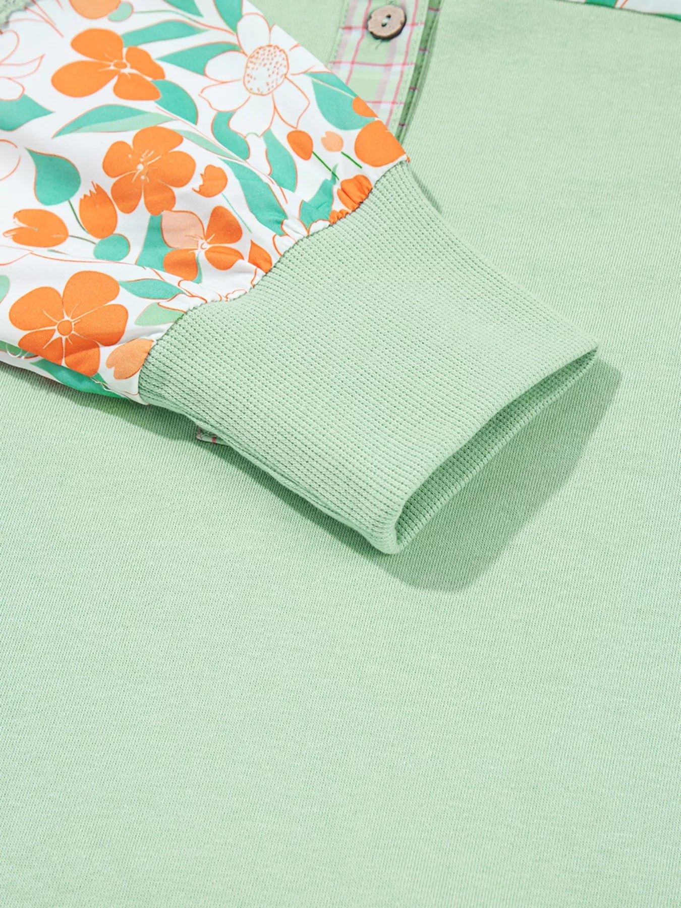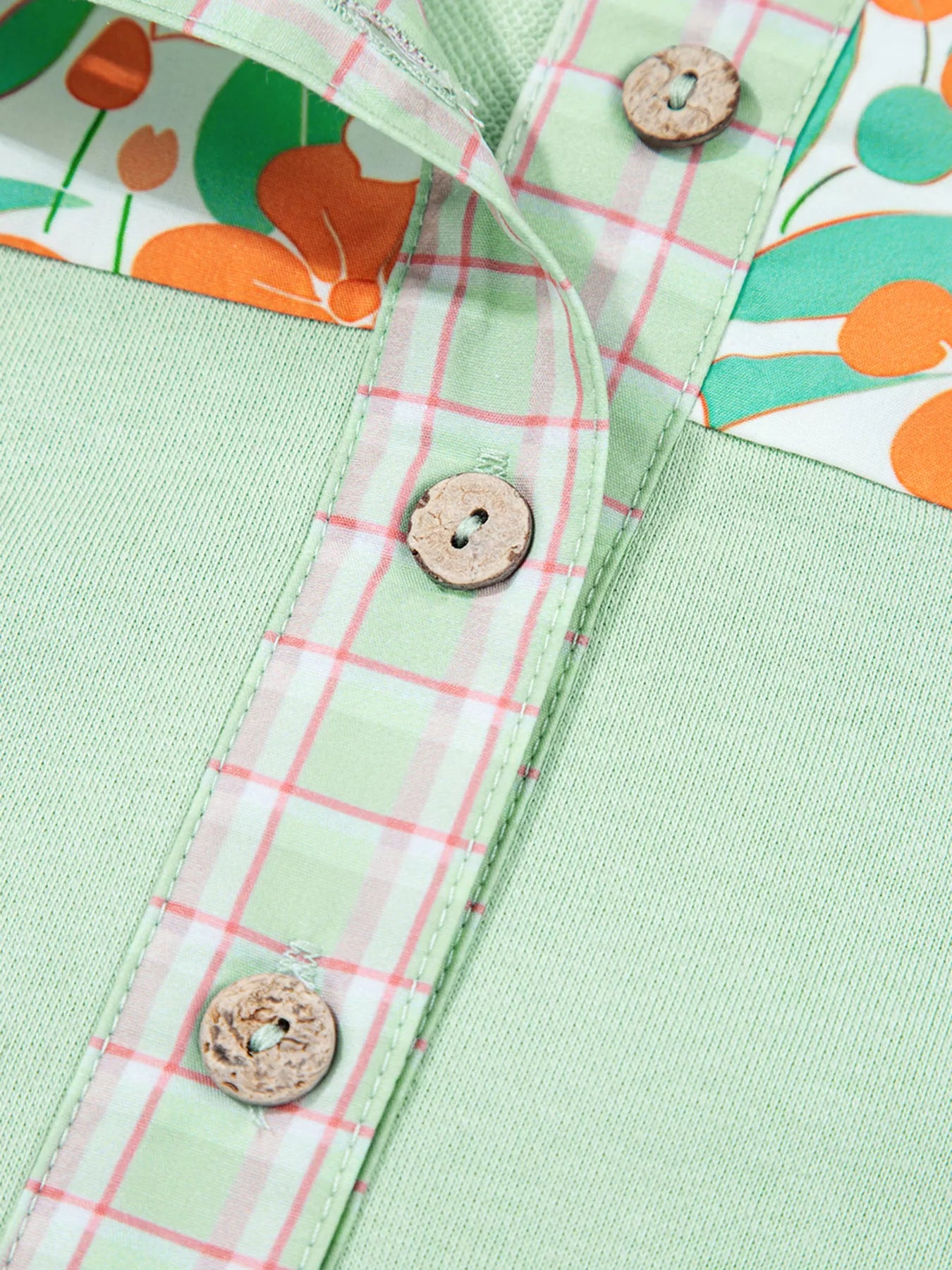 Lace Floral Patchwork Half Button Hooded Top