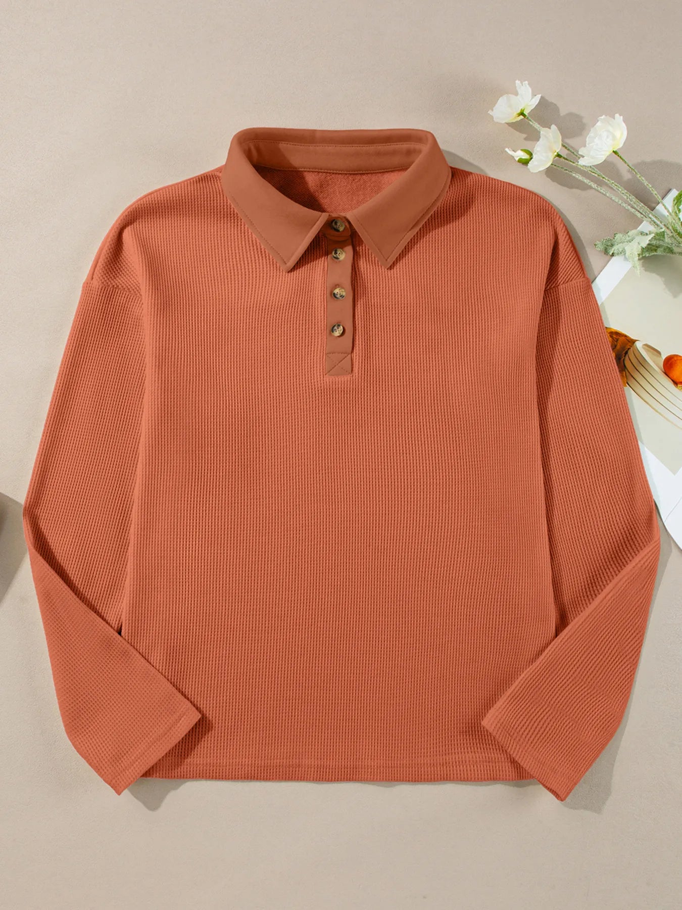 Long Sleeve Thermal Knit Polo Top