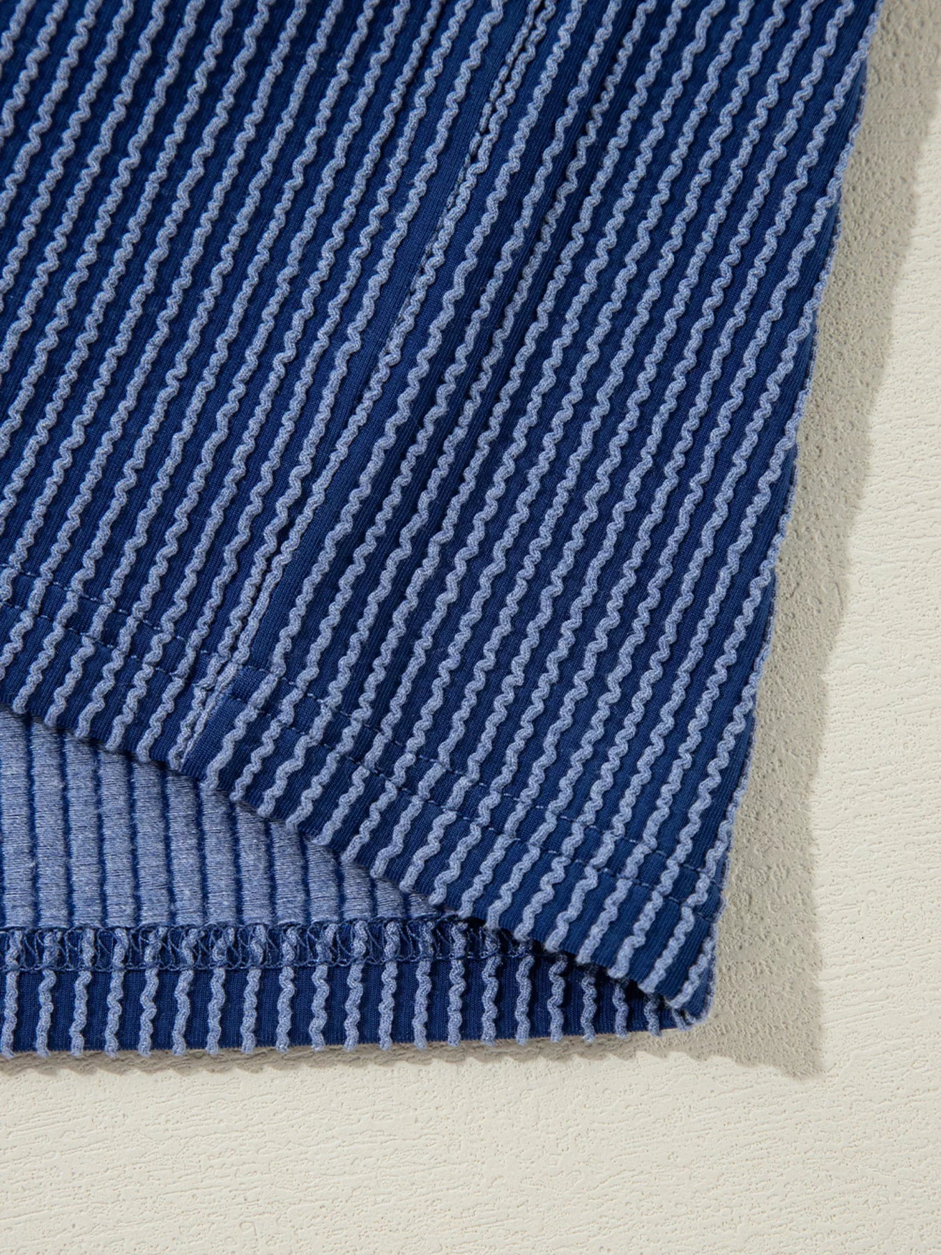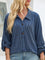 Oversized Twist Ribbed Collared Henley Top with Roll Up Sleeve