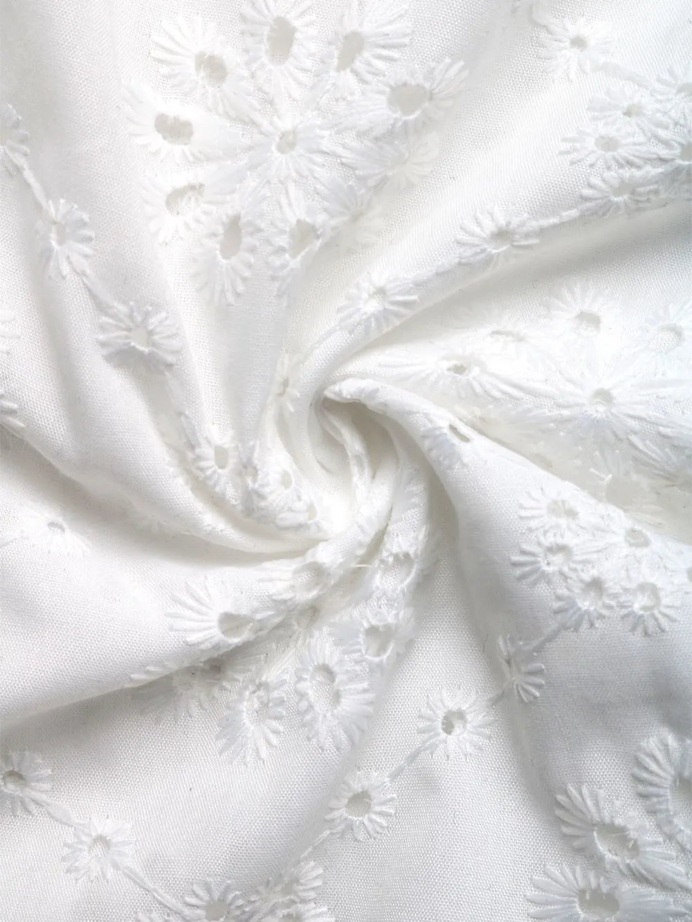 Perfee Eyelet Notched Ruffled Cap Sleeve Blouse