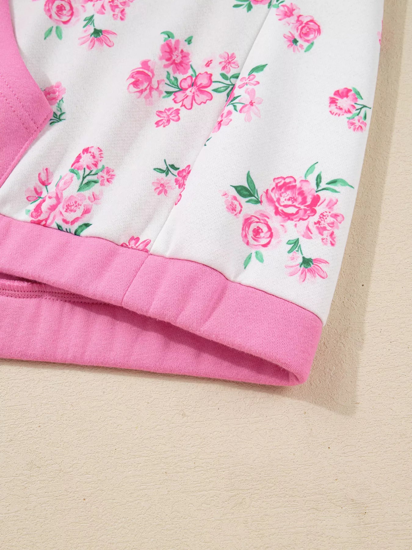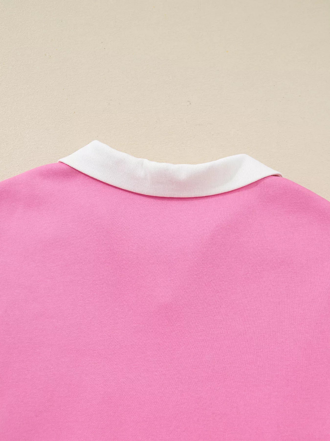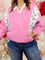 Plus Size Contrast Polo Collar Floral Patchwork Elastic Cuffs Long Sleeve Top