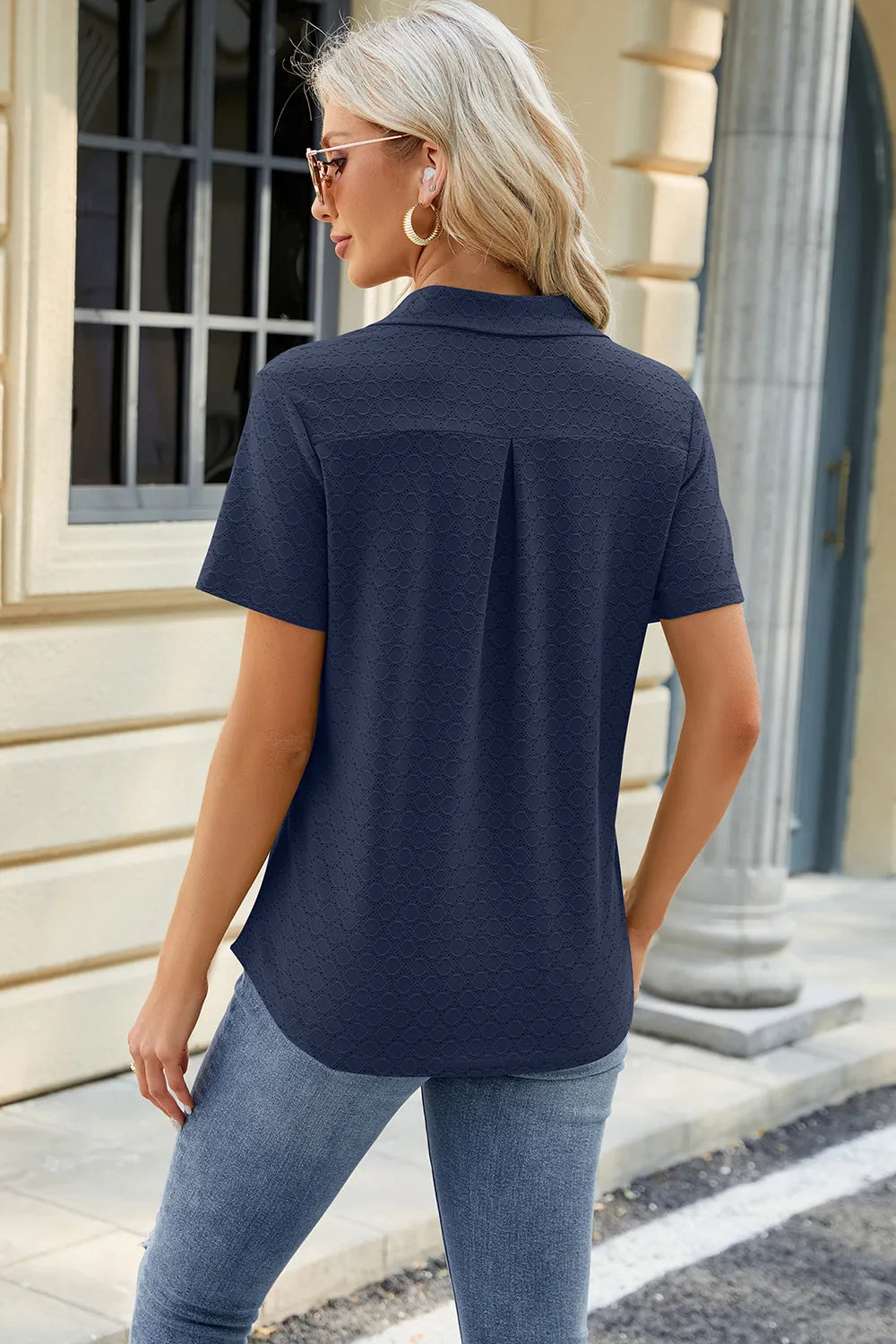 L:Bust 40.55 in, Sleeve Length 7.48 in, Top Length 26.77 in