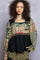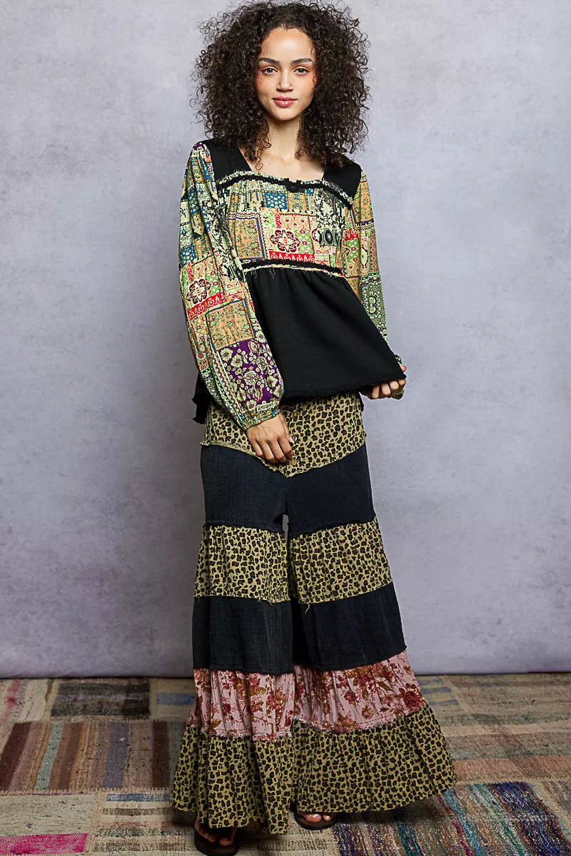 POL Balloon Sleeve Peplum Blouse with Trim Detail
