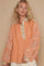 This stunning bohemian-inspired blouse features a luxurious textured knit construction with eye-catching cable knit sleeves in a warm coral orange hue. The standout design element includes contrasting floral print collar and cuffs that add feminine charm and visual interest. Made from soft, comfortable knit fabric blend that provides warmth and comfort. The oversized silhouette offers a relaxed, effortless fit perfect for casual styling. Unique mixed-texture design combines smooth ribbed body with chunky cable knit sleeves for dimensional appeal. Versatile piece that transitions easily from casual daywear to elevated bohemian looks. Quality construction ensures durability while maintaining soft hand feel. Perfect for layering or wearing as a statement piece.