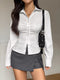 POL Printed Button Down Patchwork Short Sleeve Shirt
