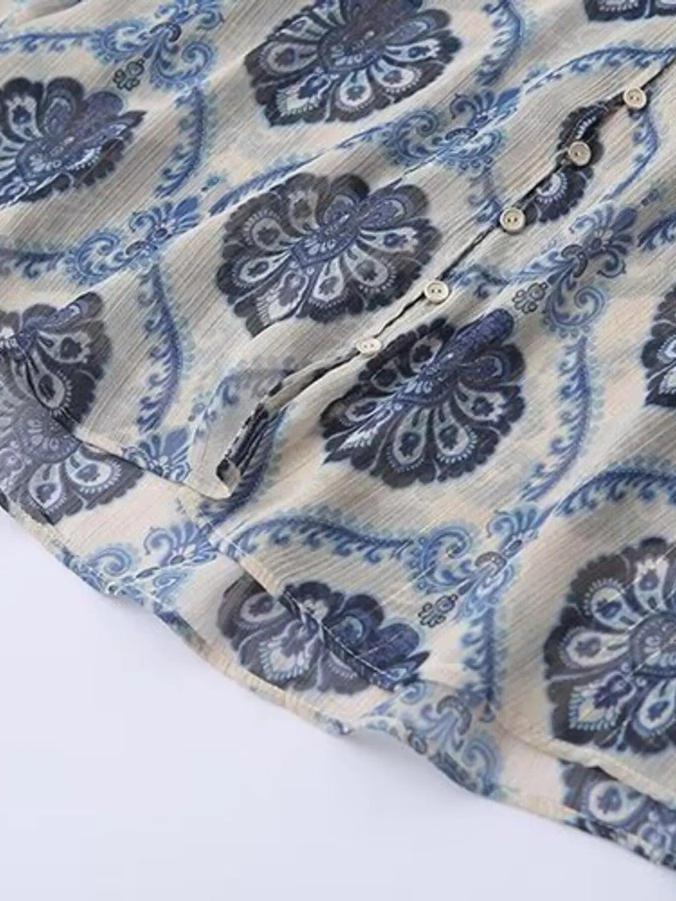 Printed Button Up Long Sleeve Dress