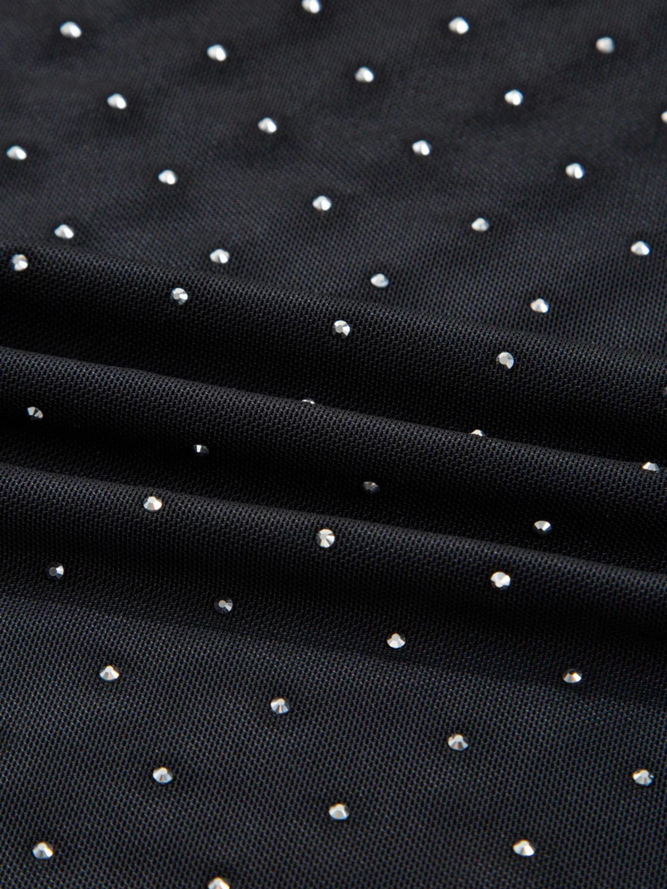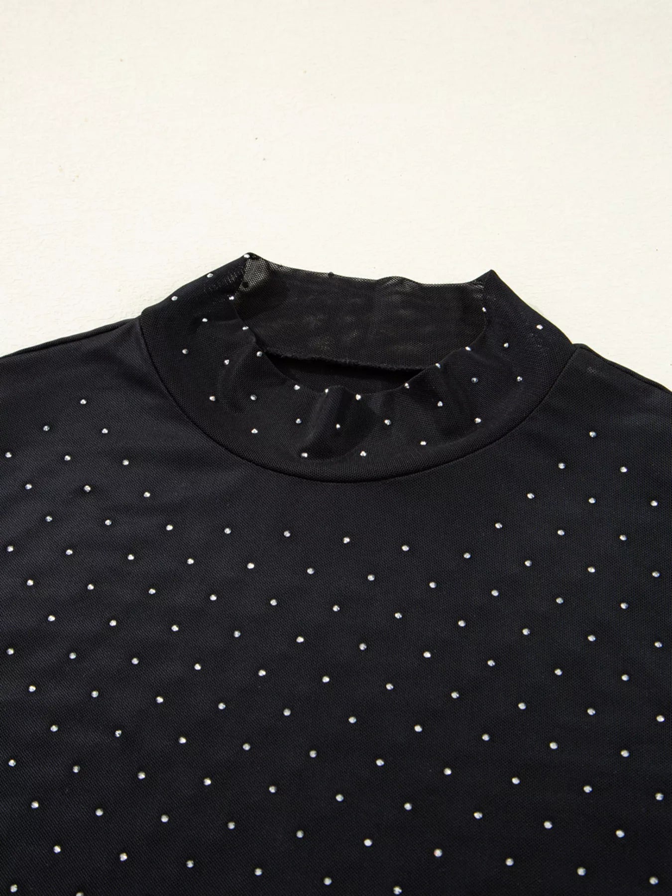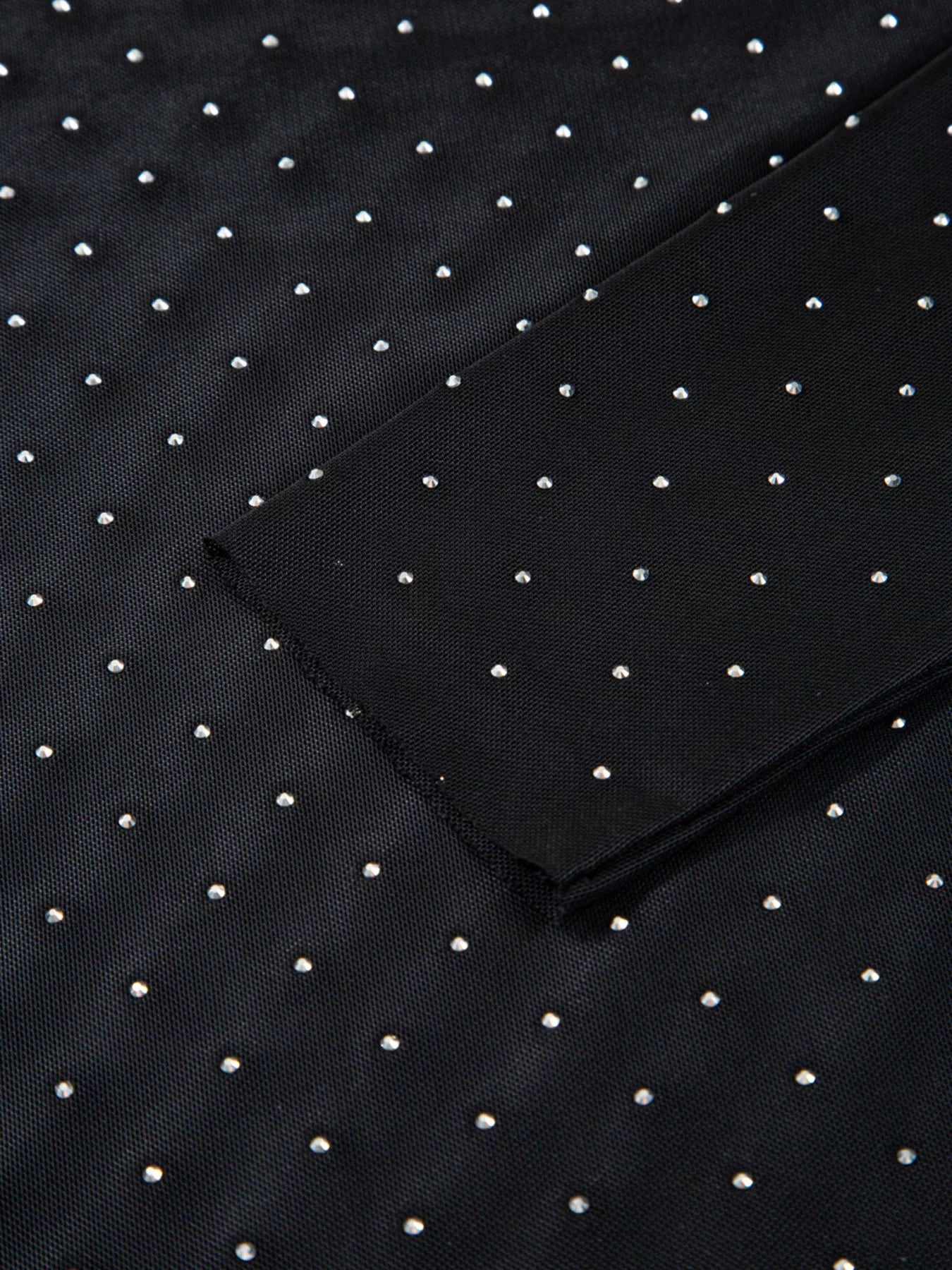 Rhinestone Embellished Mesh Long Sleeve Top