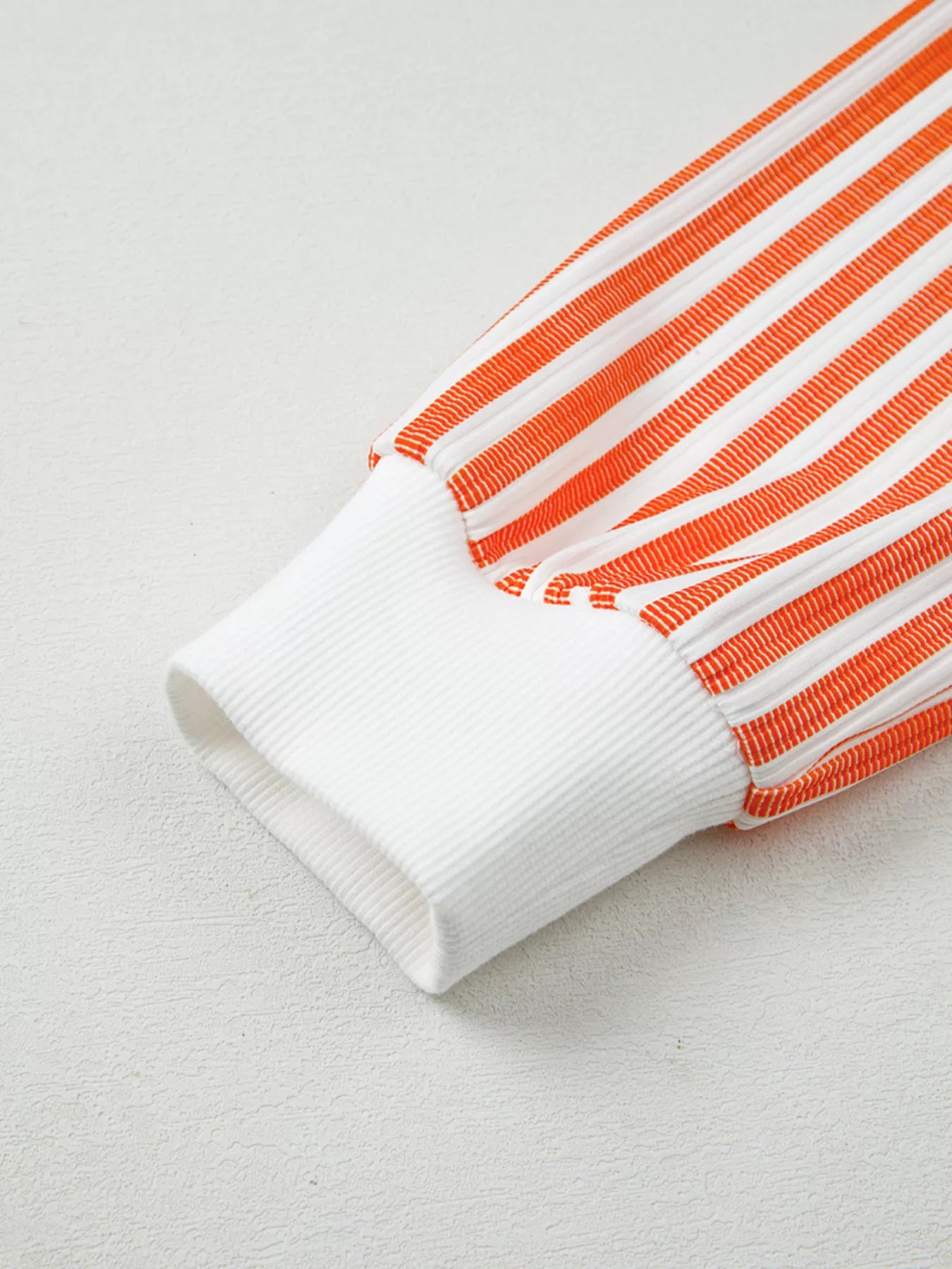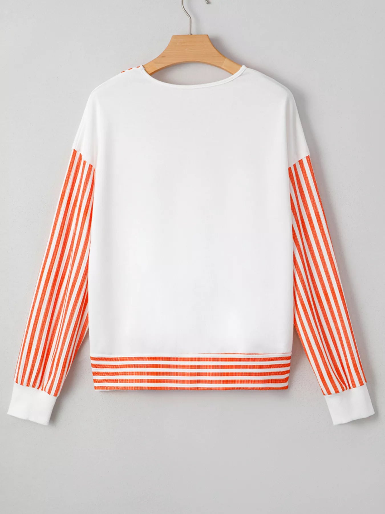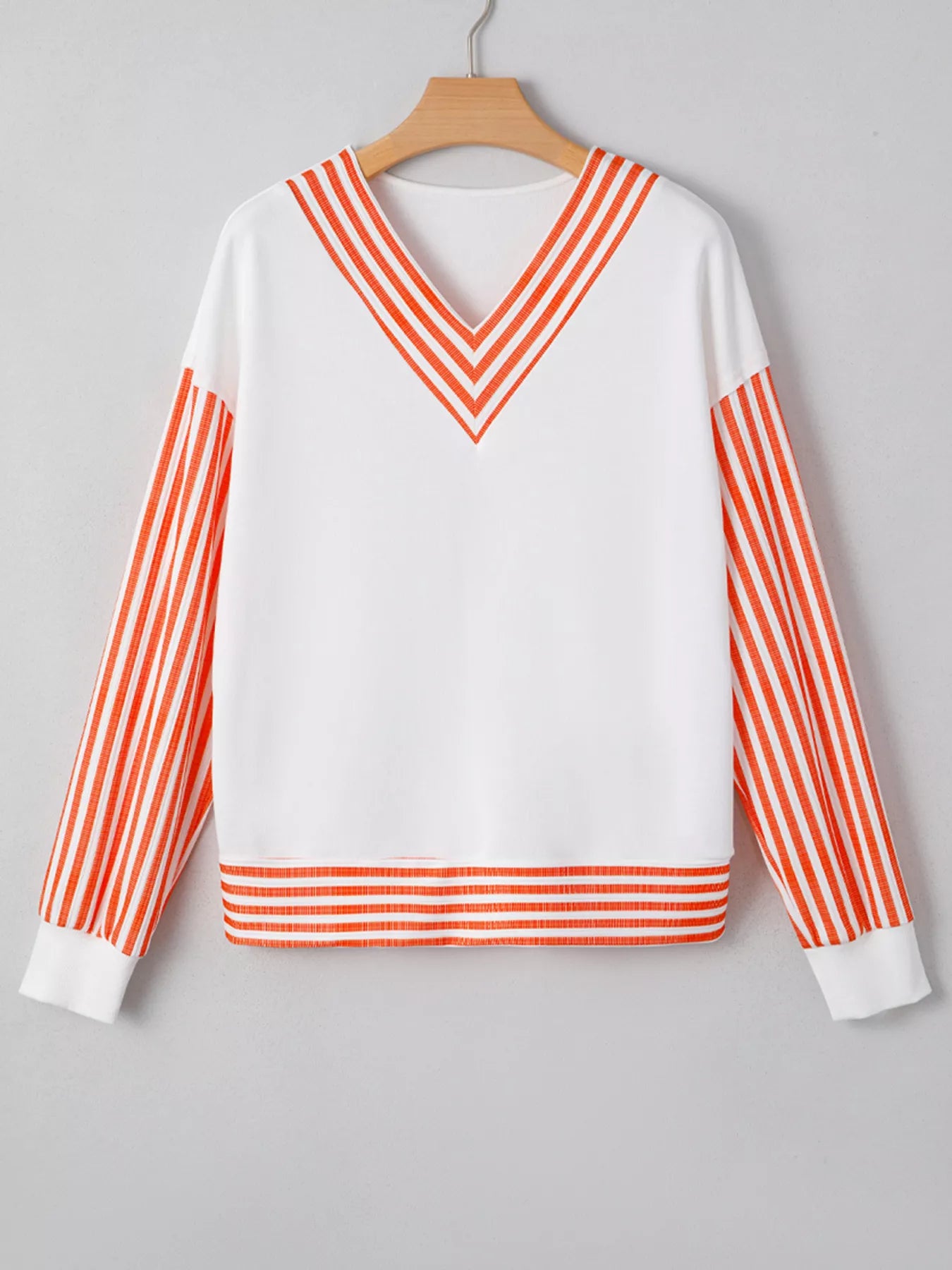 Stripe V Neck Drop Shoulder Patchwork Long Sleeve Top