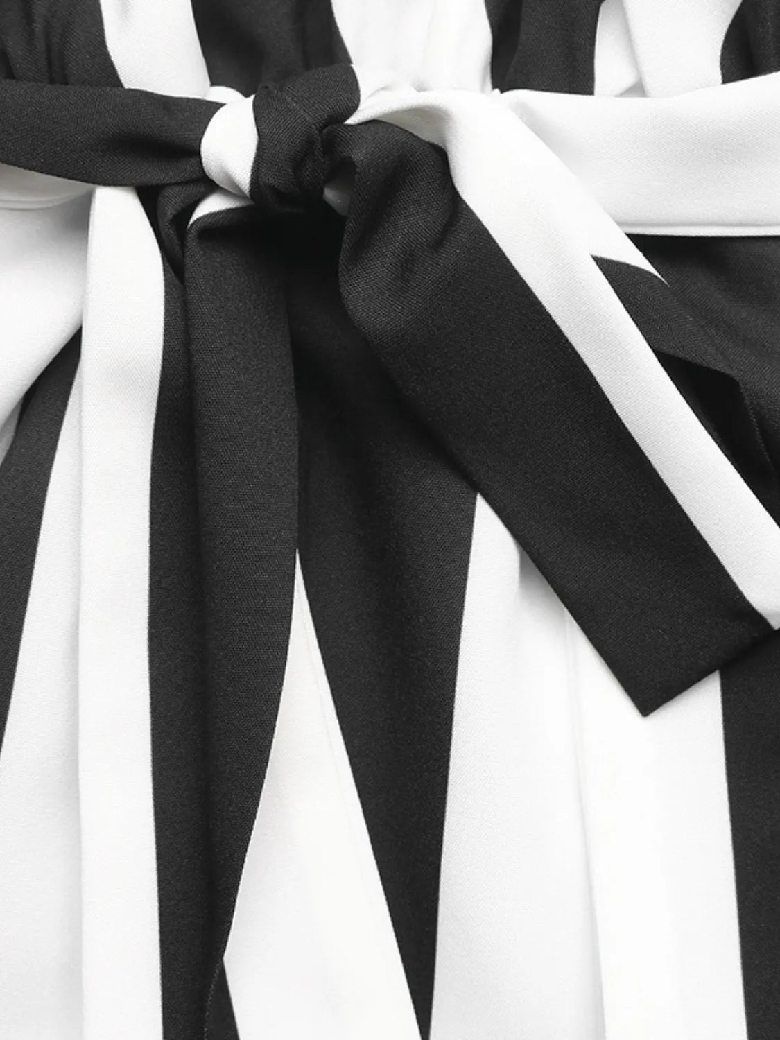 Striped Surplice Flutter Sleeve Wrap Blouse