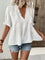 Swiss Dot Ruffled V-Neck Blouse with Flounce Sleeves