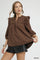 Umgee Bow Print Corduroy Puff Sleeve Blouse with Ruffled