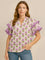 Umgee Floral Print Ruffle Short Sleeve Blouse