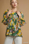Umgee Full Size Floral Vine Print Blouse with Balloon Sleeves Plus Size
