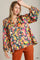 This stunning tropical print blouse features a vibrant multicolor design with exotic botanical motifs. Crafted from lightweight, breathable fabric, it offers comfortable wear throughout the day. The relaxed fit silhouette with long balloon sleeves creates a flattering, effortless look. The V-neck collar with tie detail adds feminine charm, while the elastic cuffs provide practical comfort. Perfect for casual outings, vacation wear, or adding a pop of color to your wardrobe. The eye-catching tropical print makes this blouse a statement piece that pairs beautifully with solid-colored bottoms.