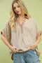 Umgee Paisley Print Button Front Blouse with Scallop Trim Detail