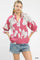 Umgee Peony Illustration Print Flounce Sleeve Blouse