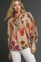 Umgee Peony Illustration Print Flounce Sleeve Blouse