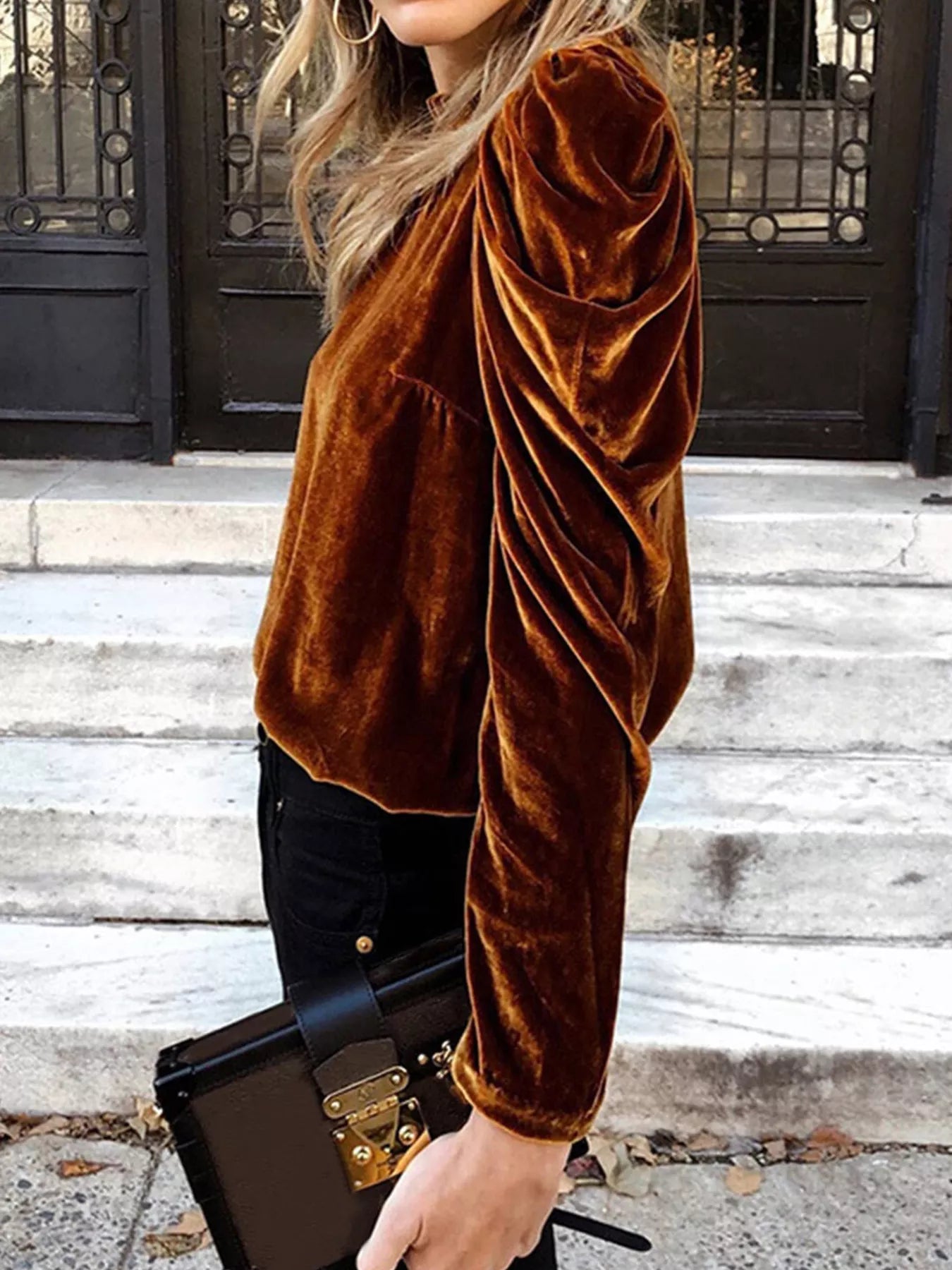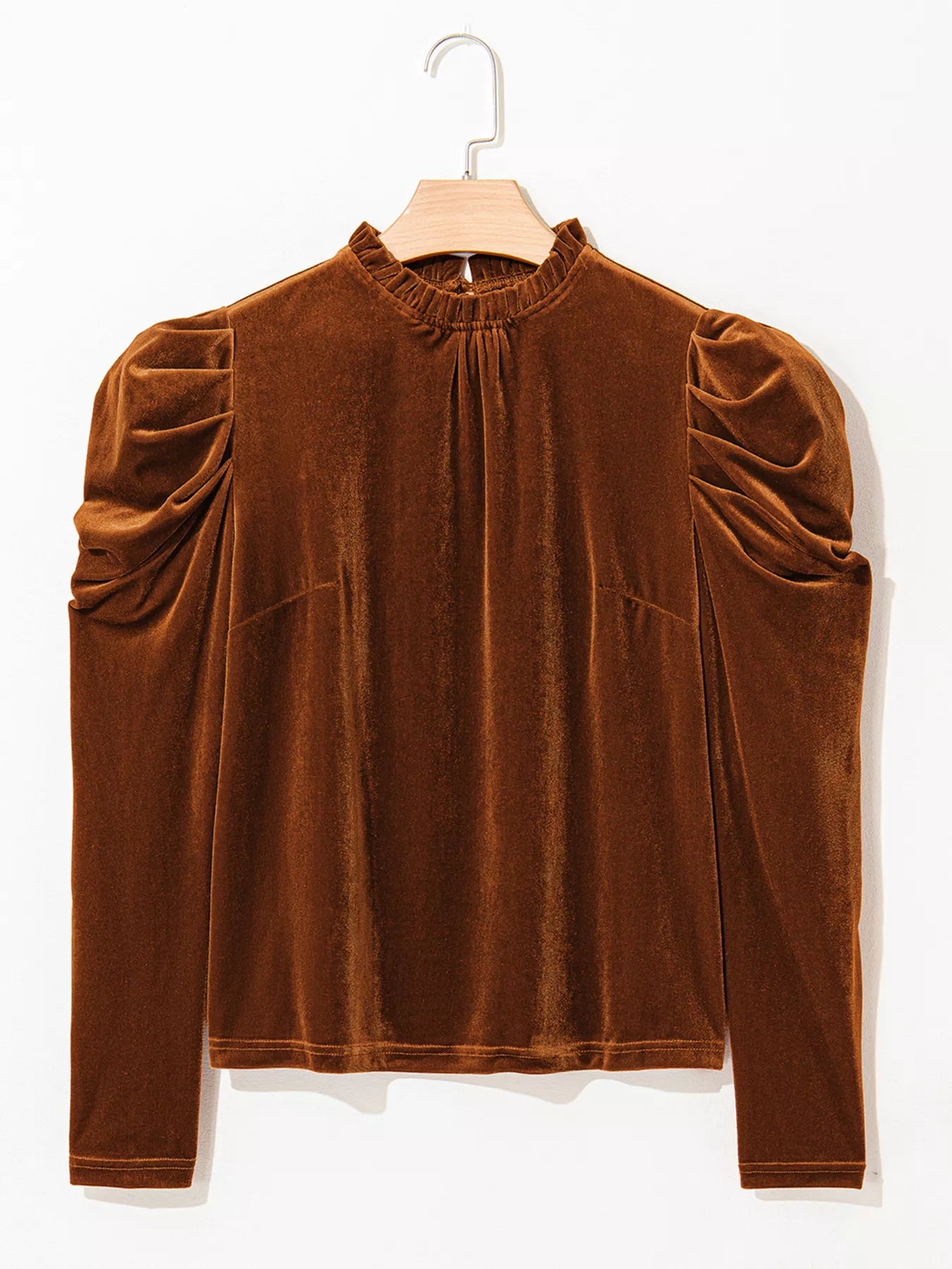 Velvet Mock Neck Long Sleeve Blouse