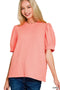 This raised rib puff sleeve top is a trendy and elegant addition to your wardrobe. The raised rib design adds texture and depth to the top, making it a unique and stylish piece. The puff sleeves create a dramatic and fashionable silhouette that is perfect for both casual and dressy occasions. The combination of the raised rib texture and puff sleeves gives this top a sophisticated and modern look. Elevate your outfit with this chic and on-trend raised rib puff sleeve top that is sure to turn heads.