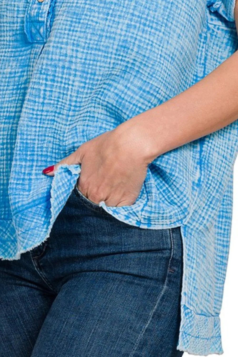Zenana Washed Double Gauze 3/4 Button Henley Neck Shirt