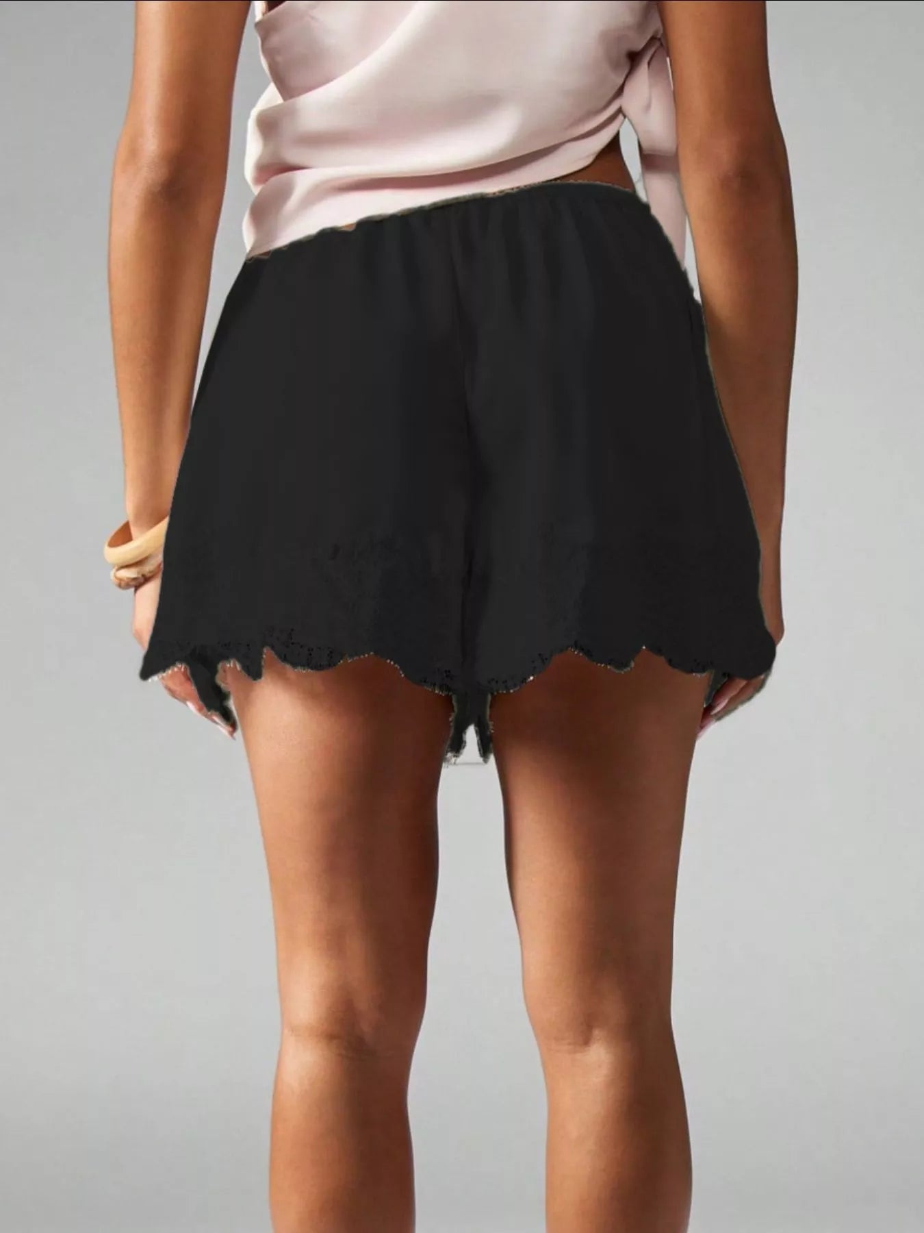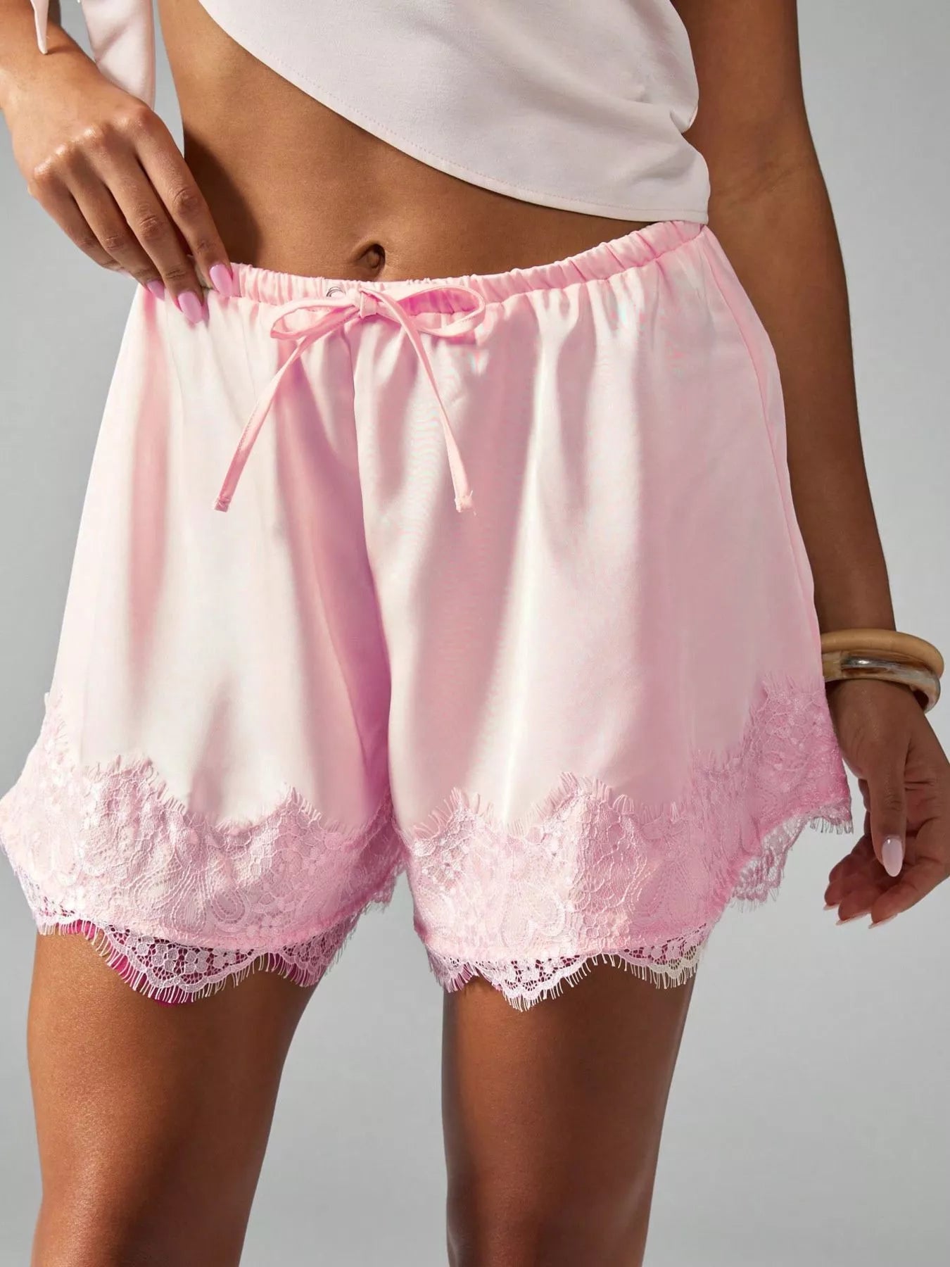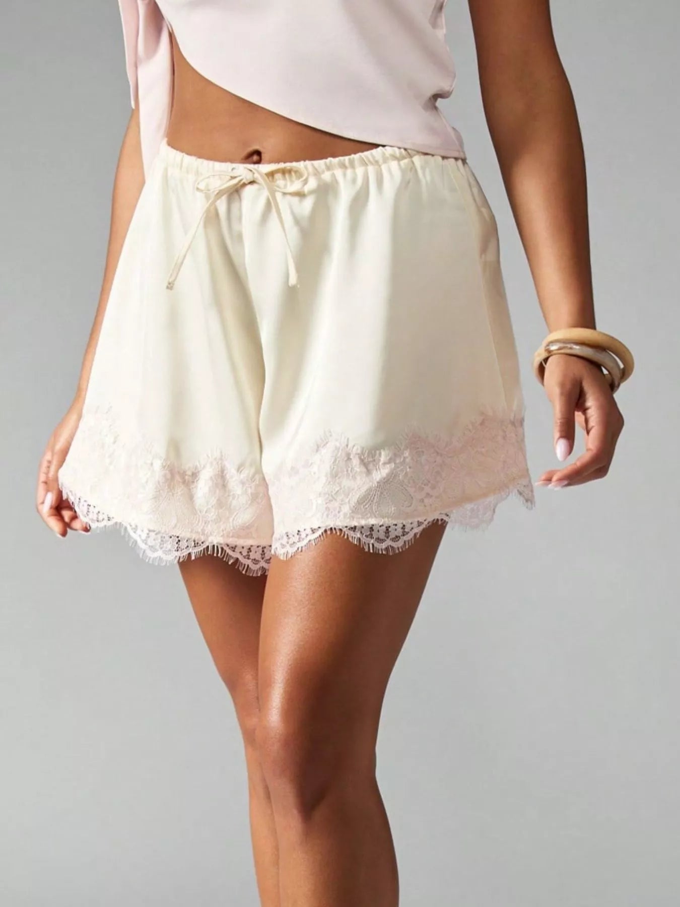 Lace Trim Drawstring Casual Shorts