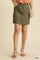 This stylish olive green button-front mini skirt features a contemporary high-waisted design with functional button closure down the front. It offers both style and practicality with side pockets. The military-inspired olive green color adds versatility to any wardrobe, while the mini length creates a modern, youthful silhouette. Perfect for casual outings or dressed up occasions, this skirt combines vintage charm with contemporary fashion trends. The structured A-line cut flatters various body types and the durable fabric ensures long-lasting wear.