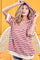 BiBi Stripe Fleece Notch Neck Short Sleeve Hoodie