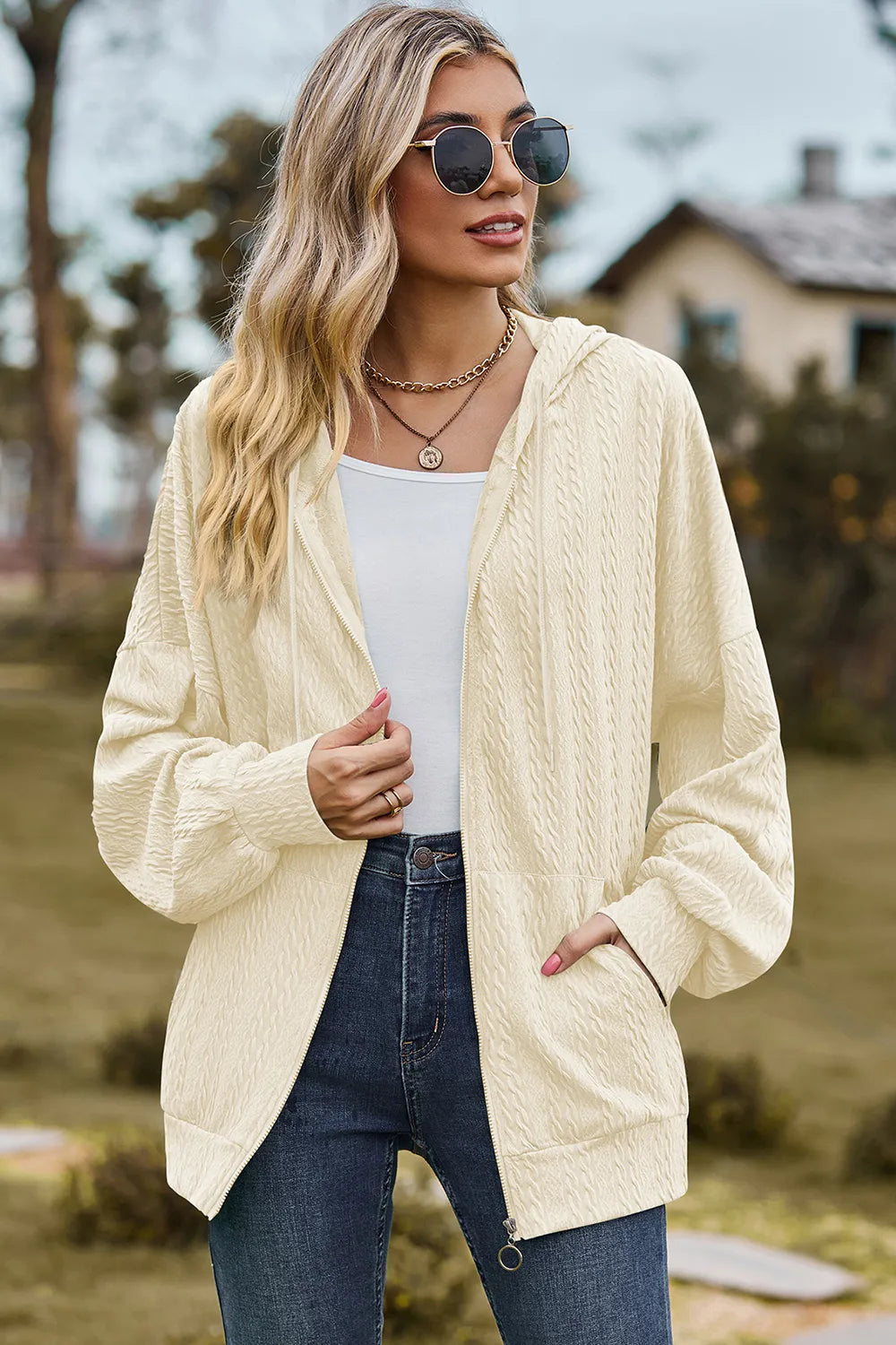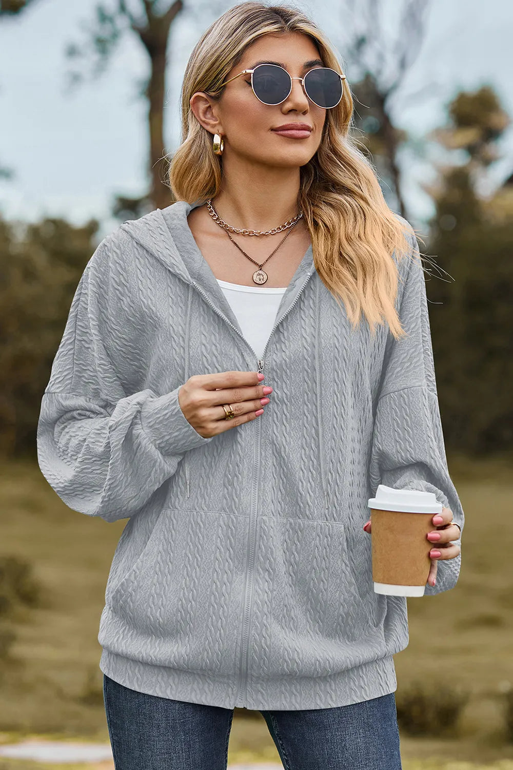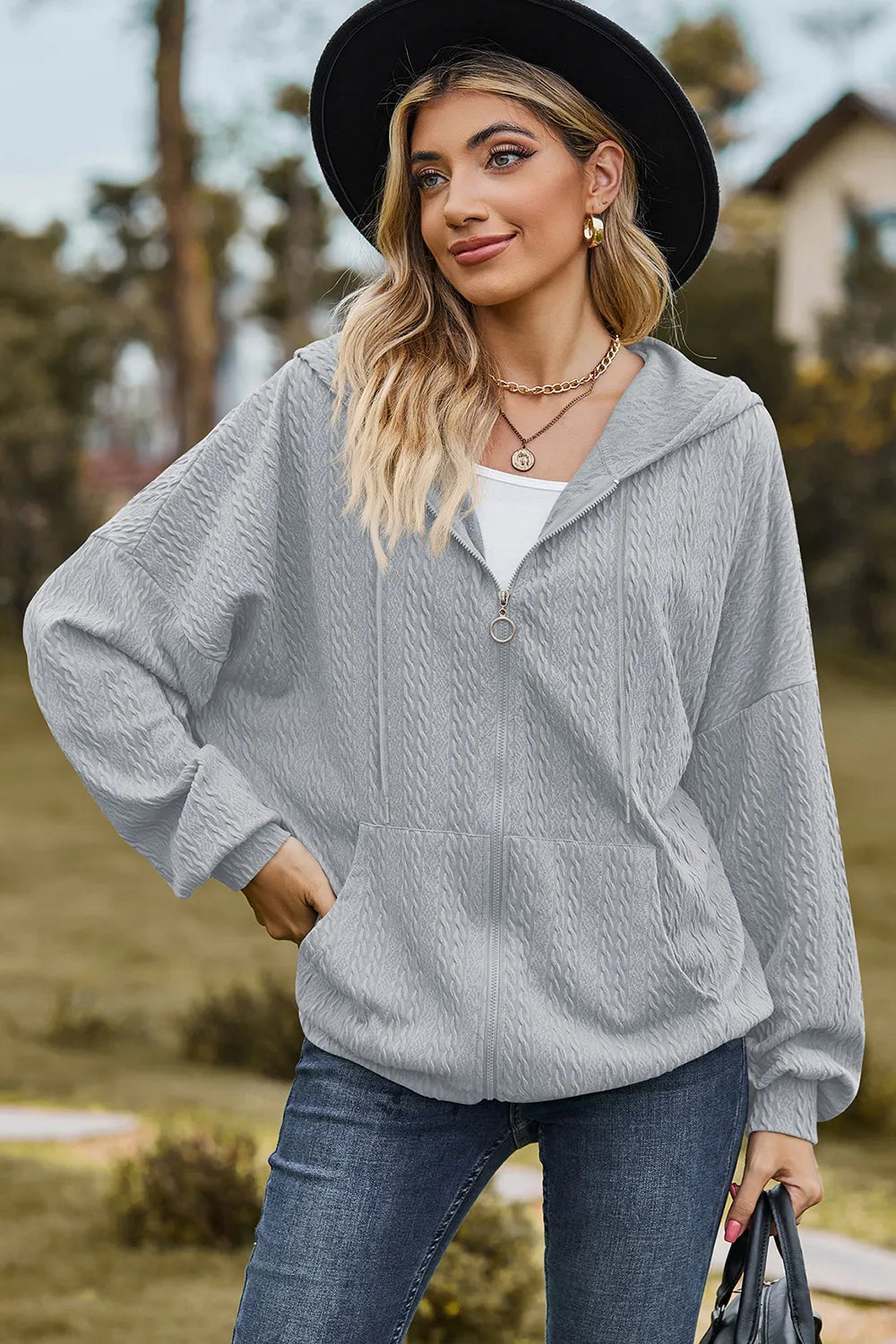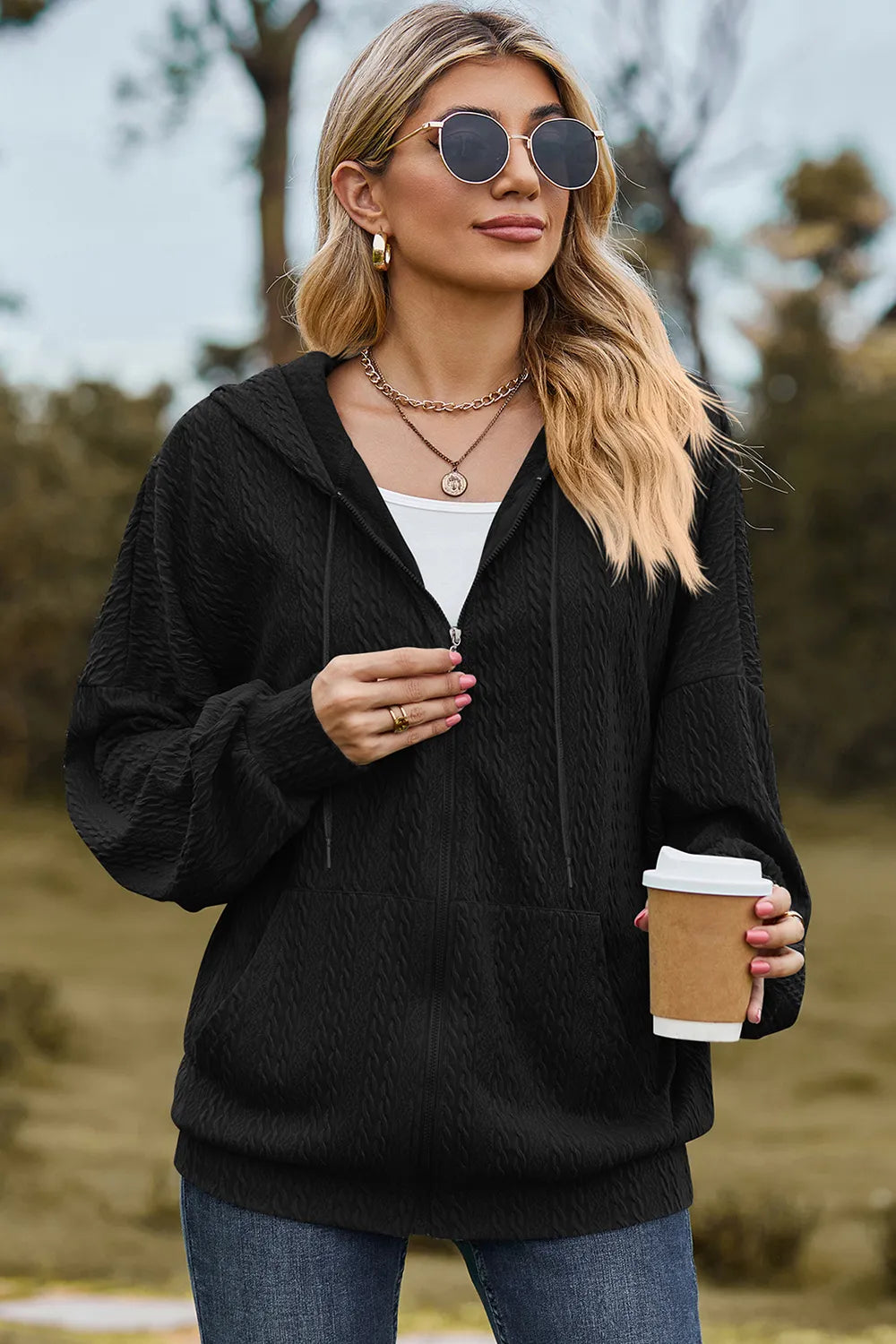 Drawstring Zip Up Dropped Shoulder Hoodie