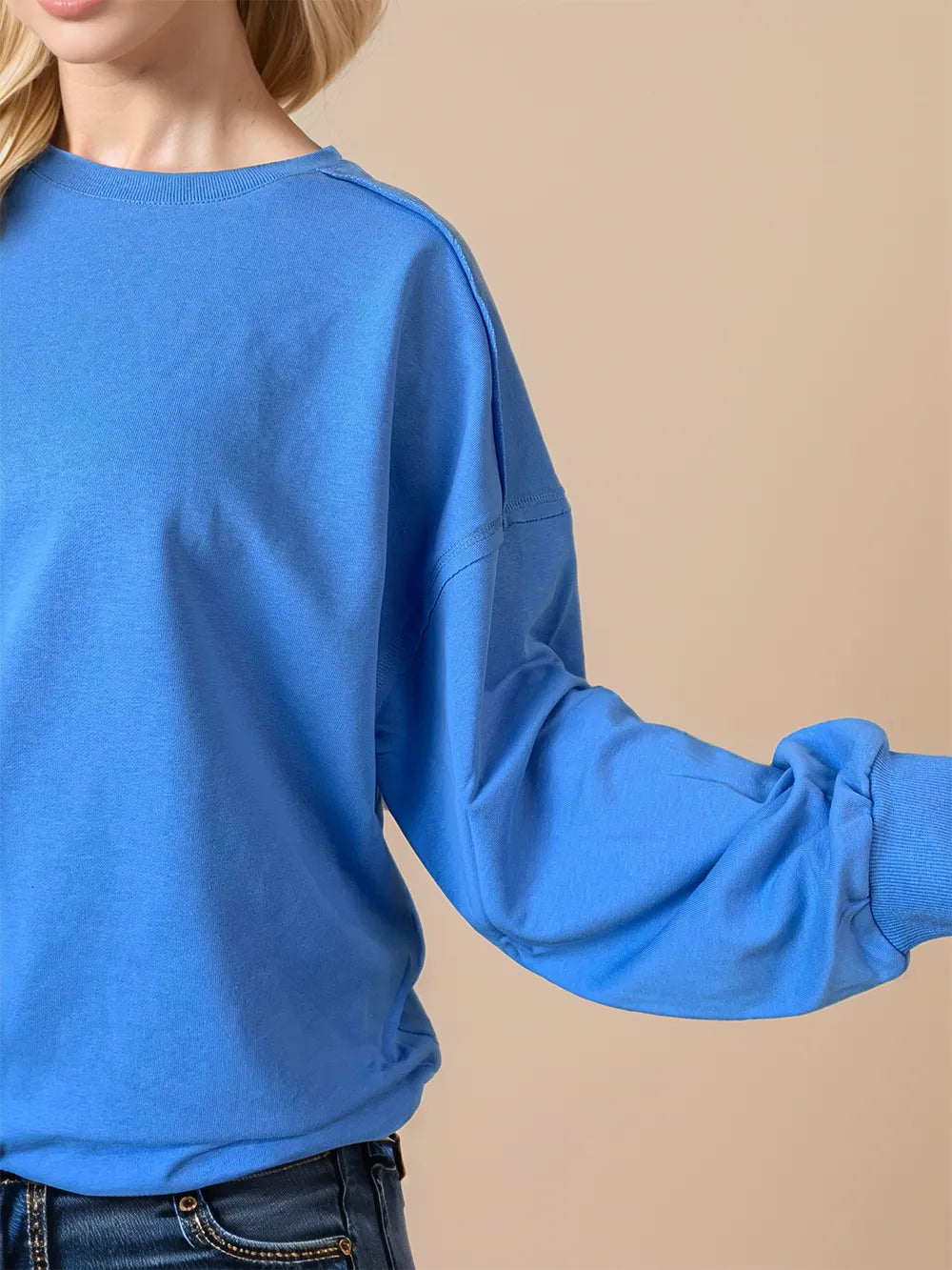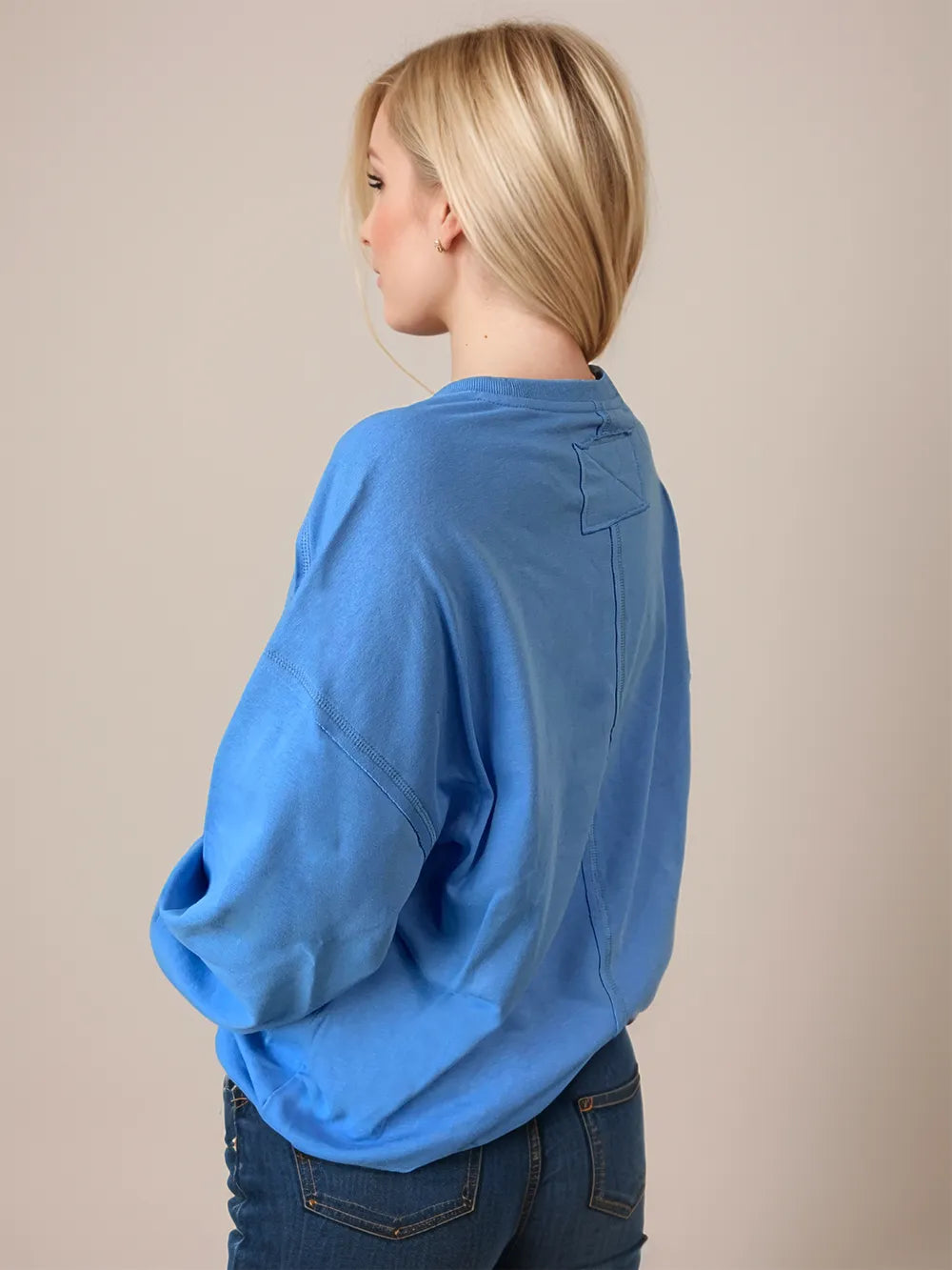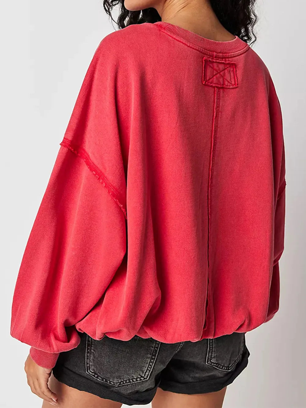 Exposed Seam Round Neck Long Sleeve Sweatshirt