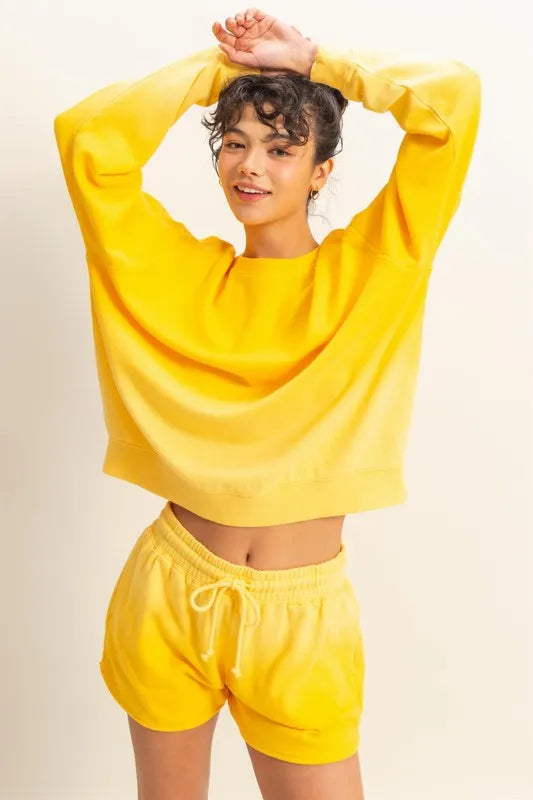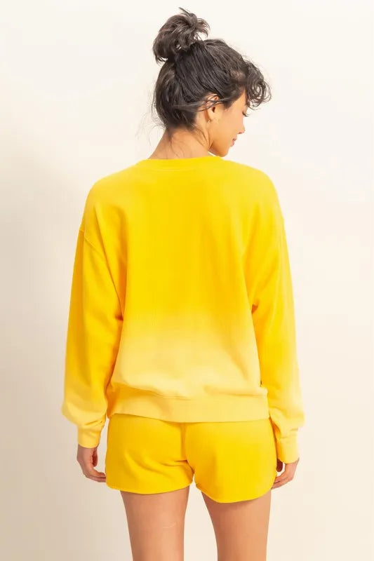 Dip Dye Long Sleeve Sweatshirt is a stylish and casual clothing piece featuring a trendy gradient color effect. This sweatshirt is designed with long sleeves for added warmth and comfort, making it a perfect choice for a cozy and fashionable look. Ideal for casual outings or lounging at home, this sweatshirt offers a chic twist to your everyday wardrobe.