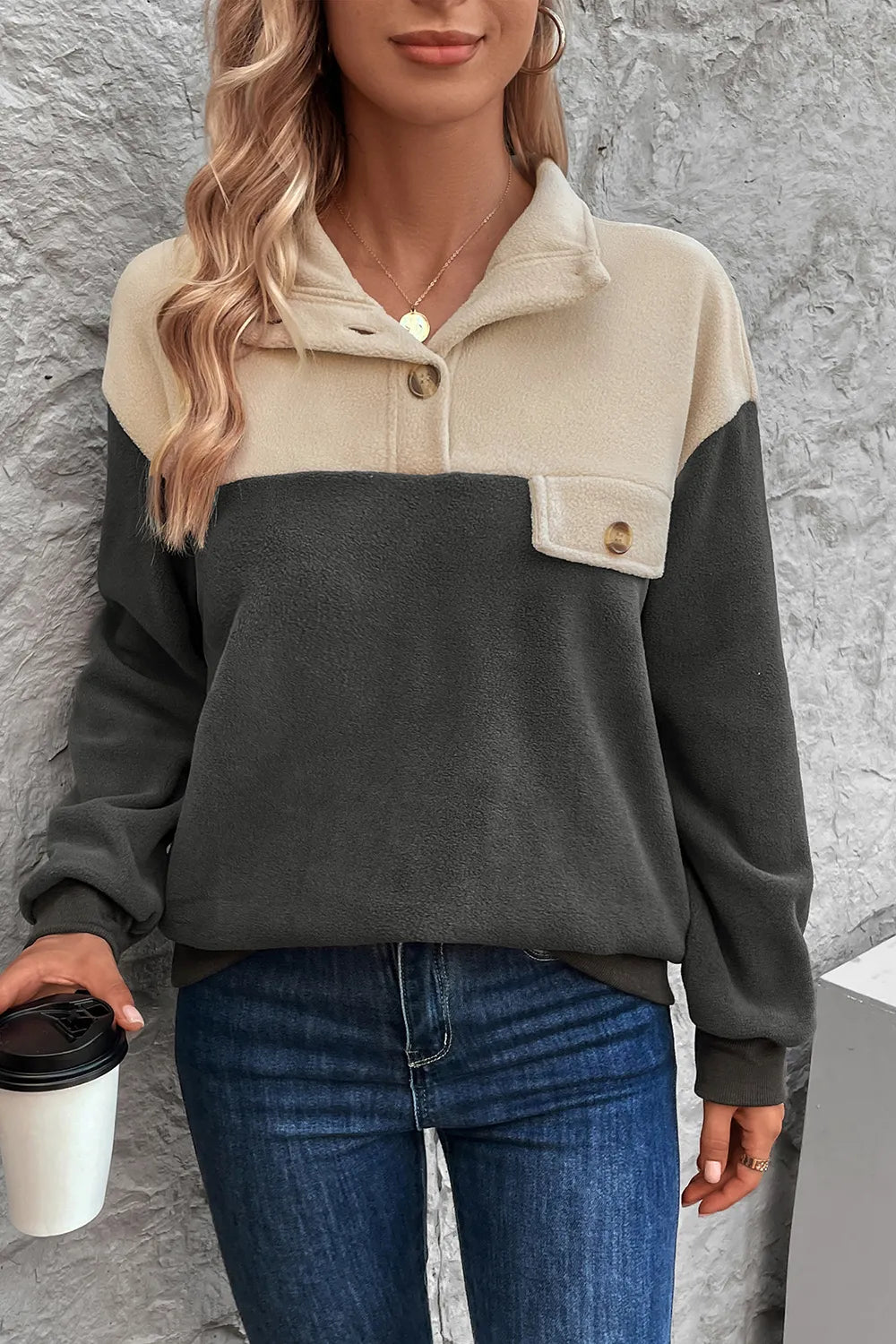 Perfee Color Block Quarter Button Dropped Shoulder Sweatshirt