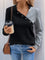 Perfee Decorative Button Contrast Long Sleeve Sweatshirt